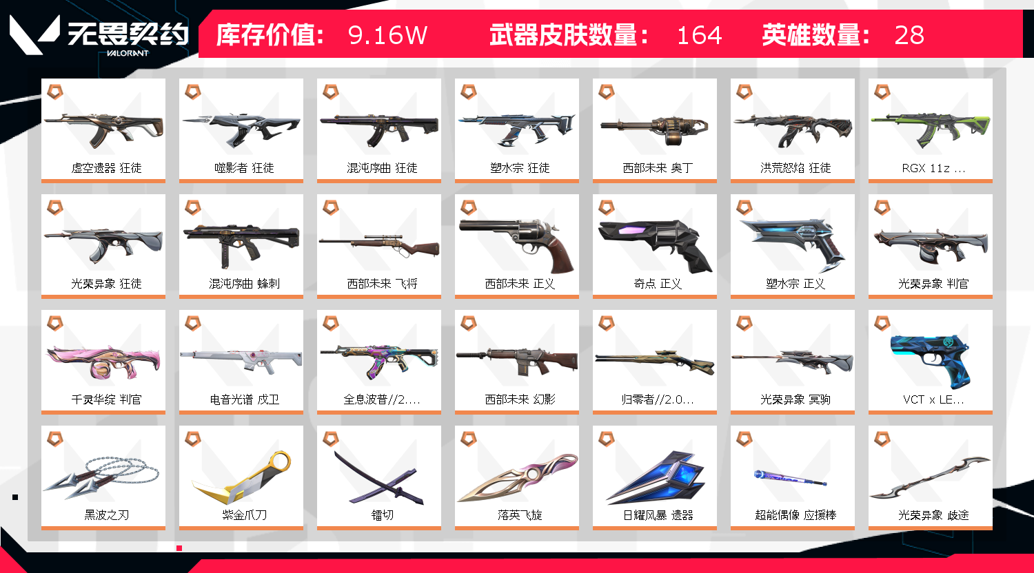 • 皮肤资产价值: 91610