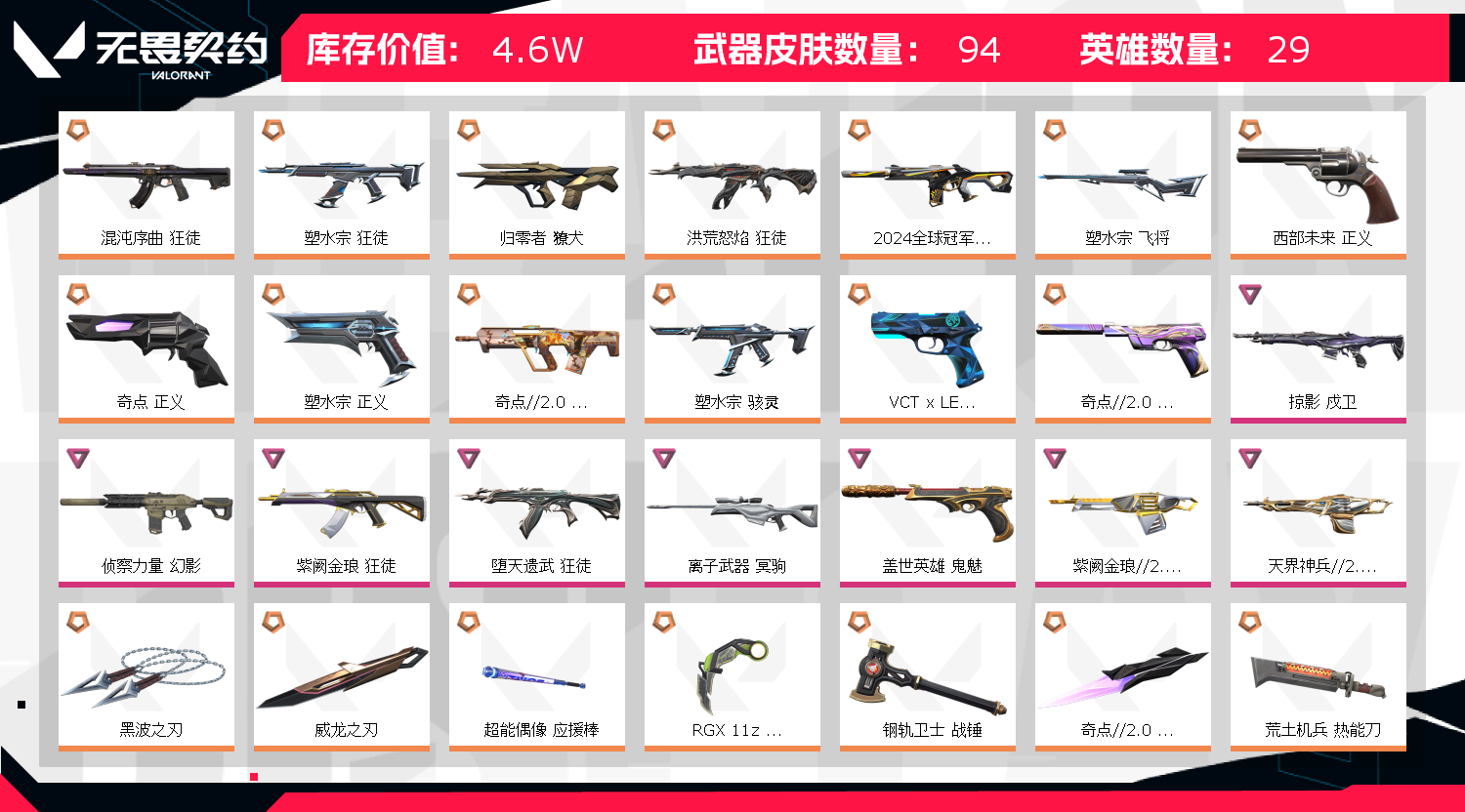 • 皮肤资产价值: 46000