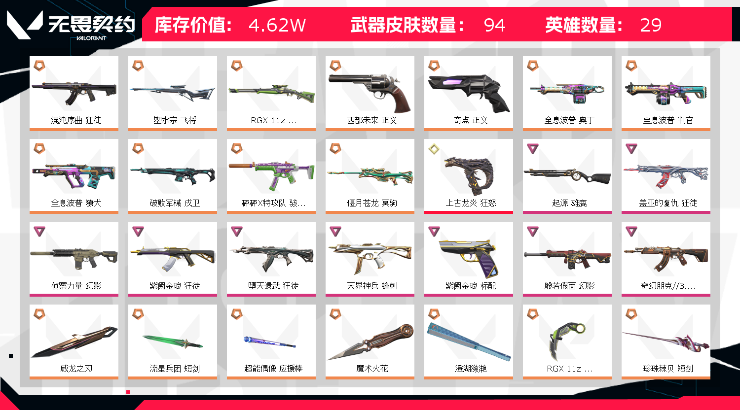 • 武器皮肤数量: 94