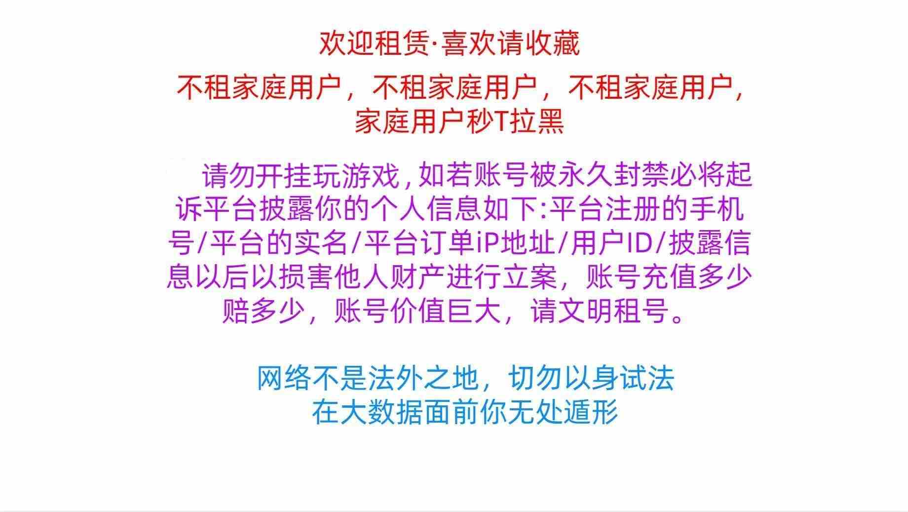 租号信息 租号须知 上号帮助