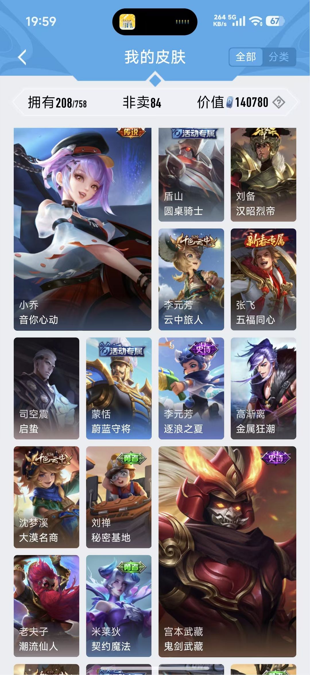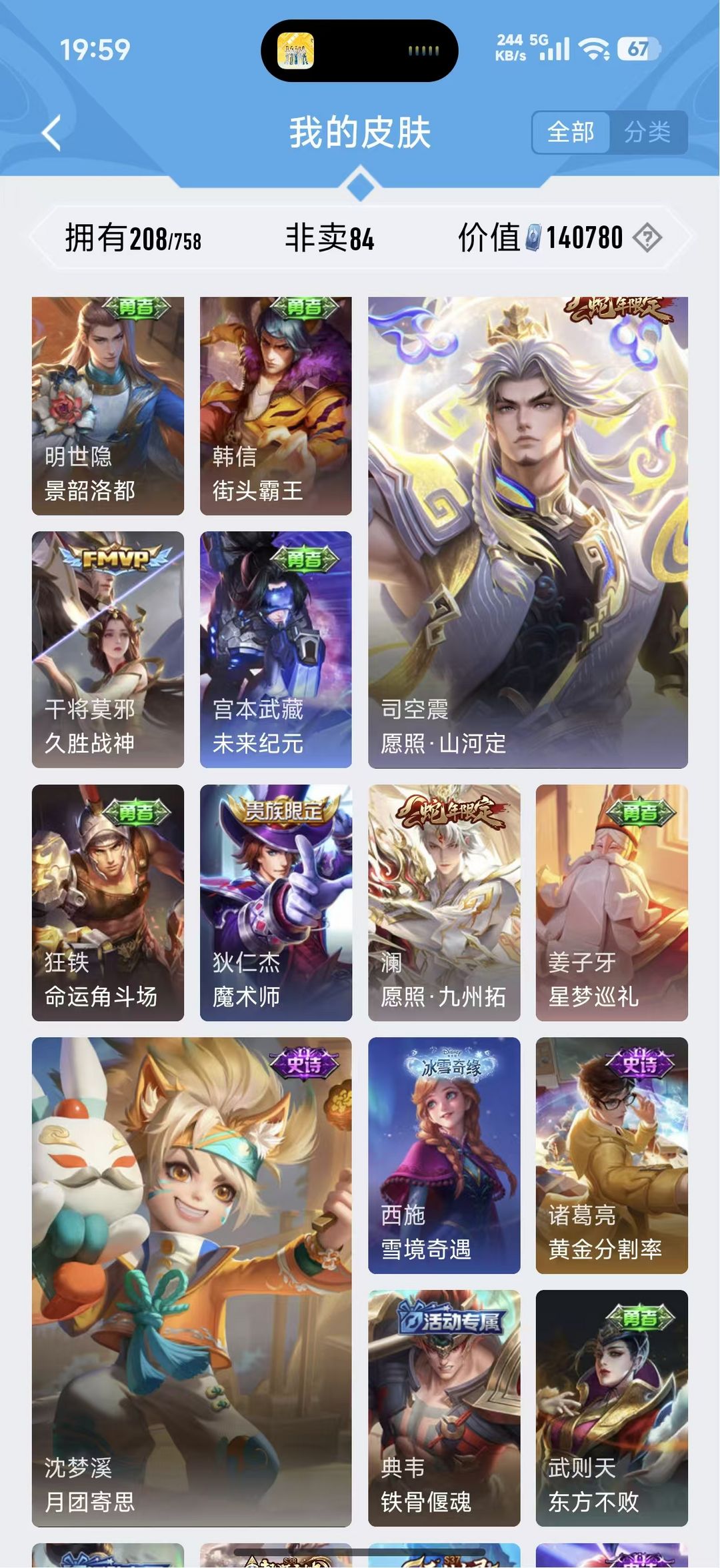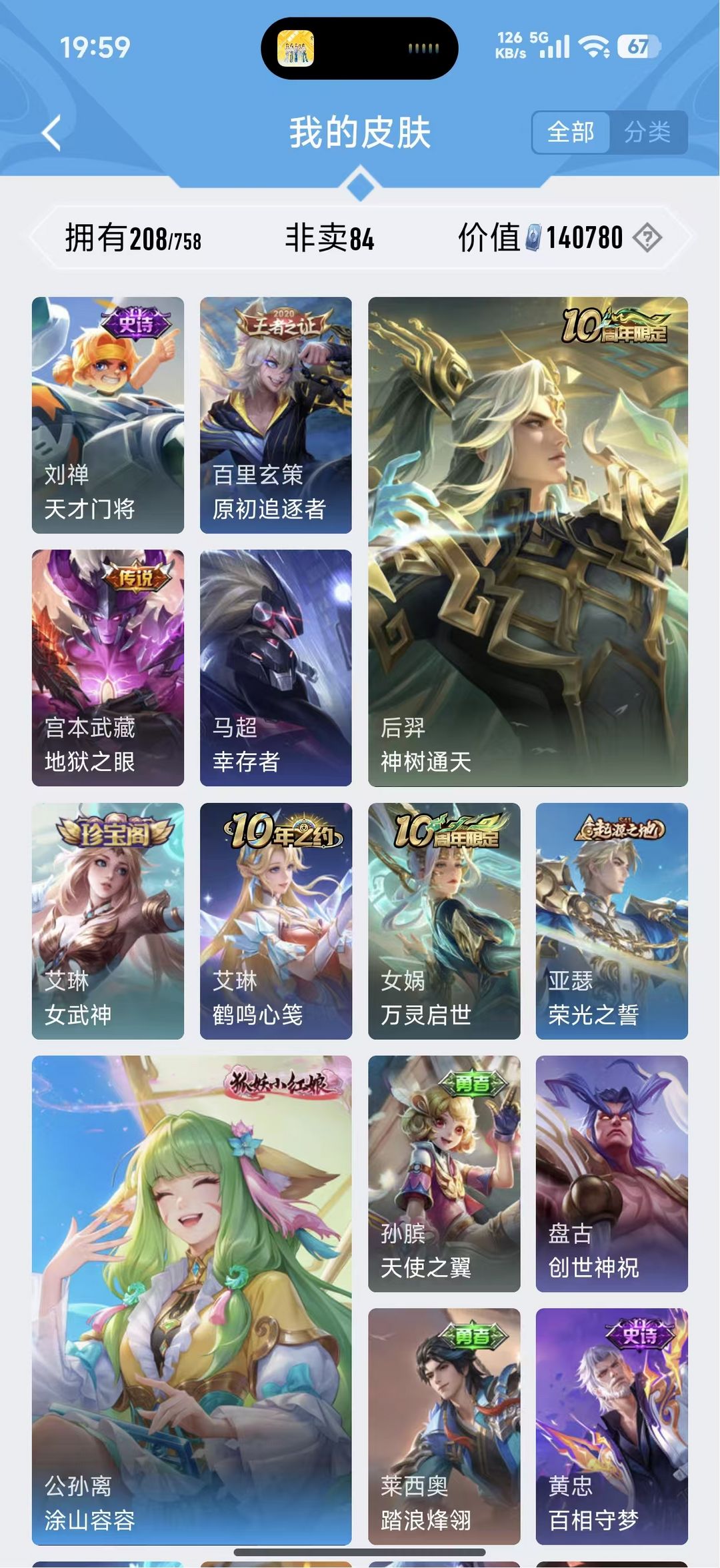V10、550皮14水、吕布典藏-千魇归渊、云缨-神骥·越千峰、怪盗基德、伽罗星传说红枫、瑶典藏拾光映像、冥王哈迪斯、、龙年限定、齐天大圣