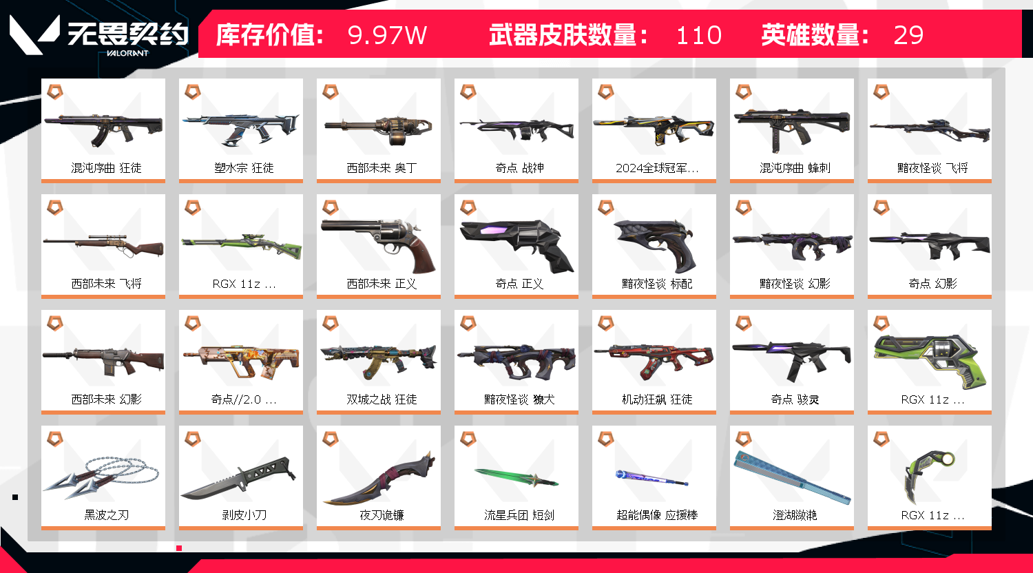 10w24冠军 RGX 离子武器 掠夺套 奇点2.0 西部未来 黯夜怪谈 剥皮小刀 艾沃莉的梦之翼