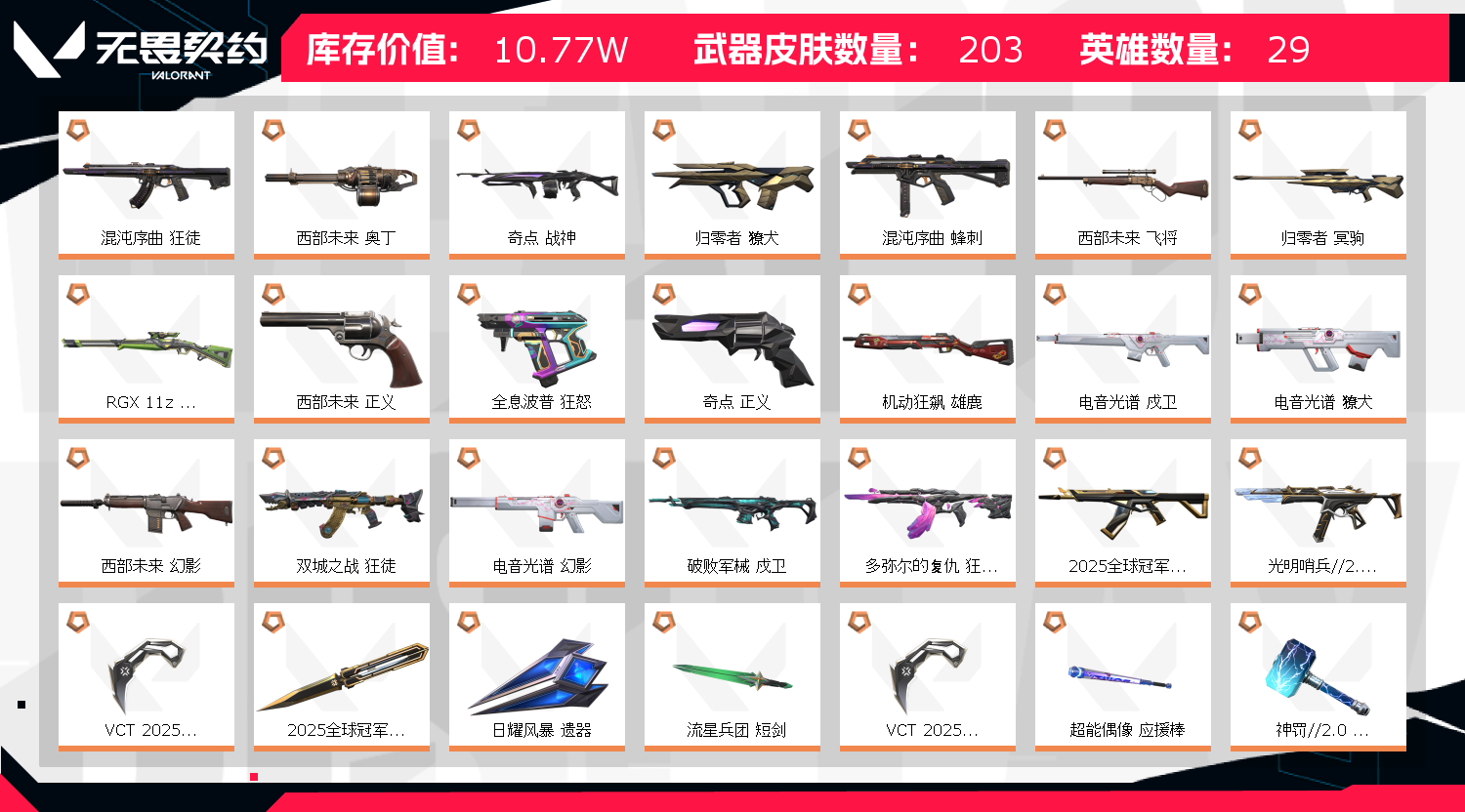 • 皮肤资产价值: 107730