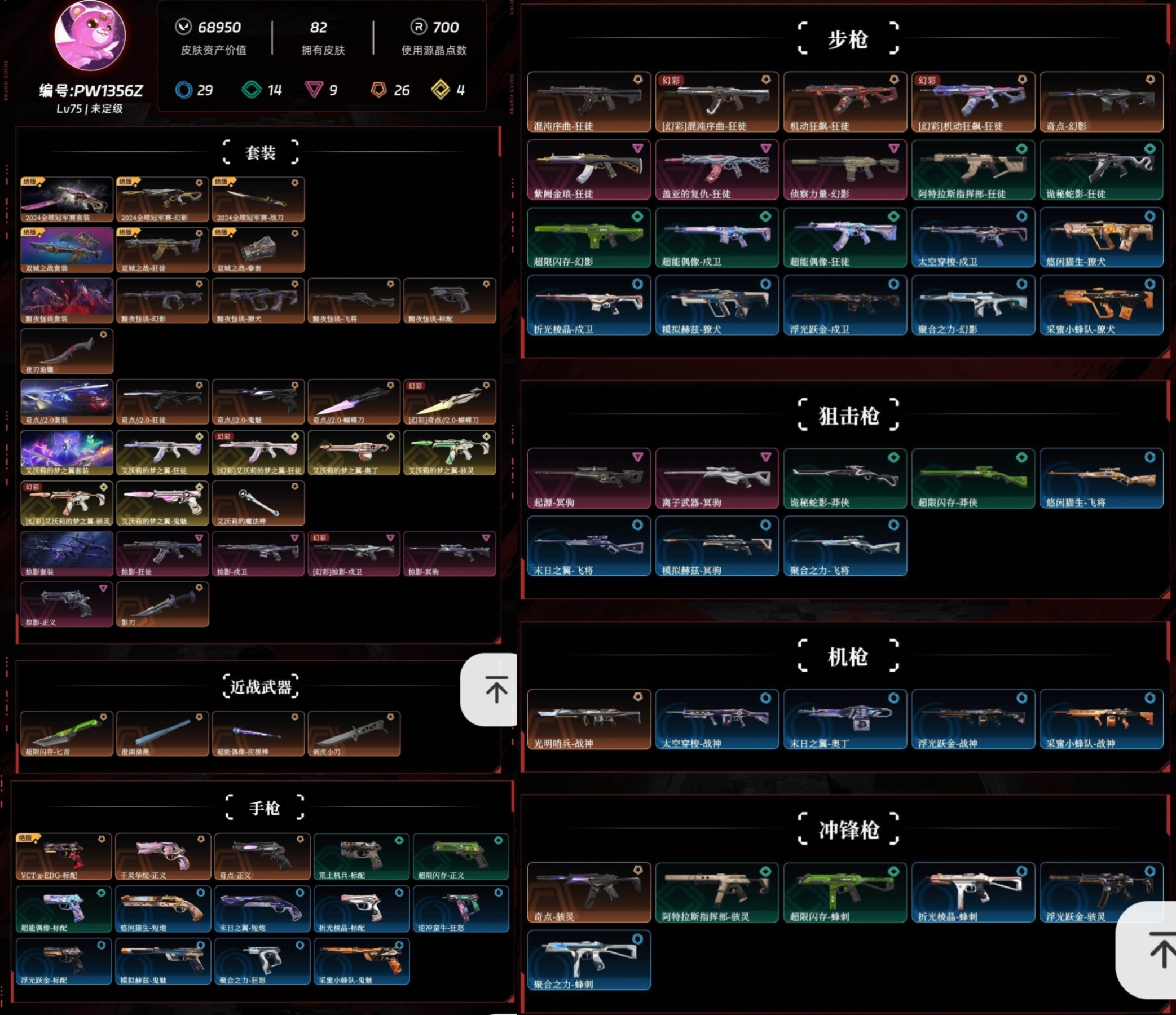 • 皮肤资产价值: 68950