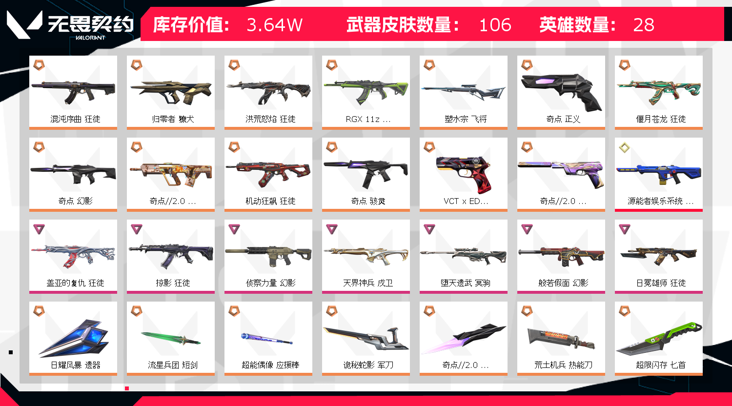 • 武器皮肤数量: 106