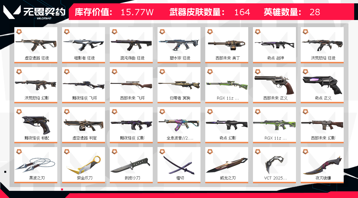 • 武器皮肤数量: 164