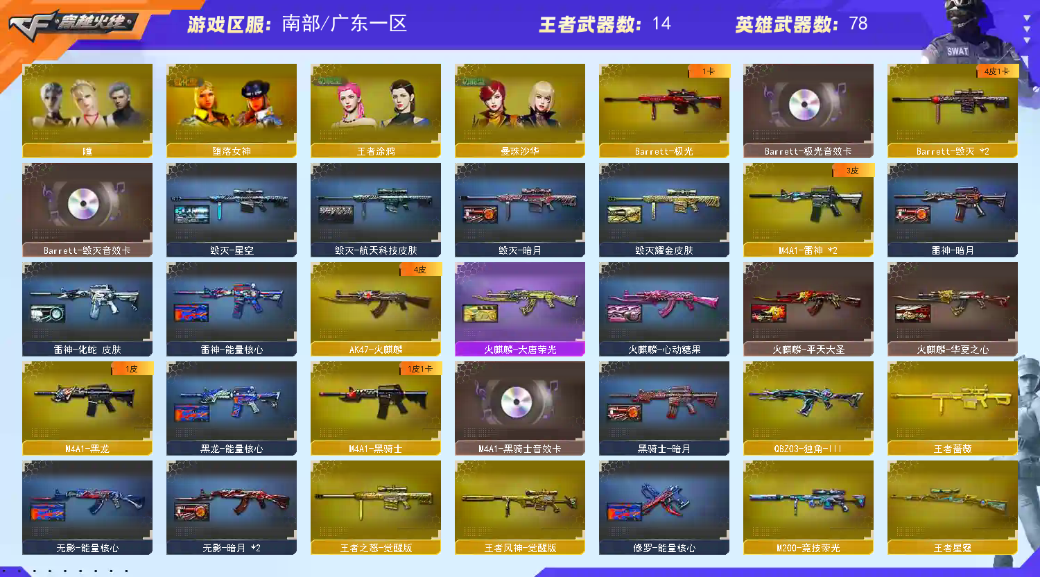 • 游戏区服:穿越火线 / 南部 / 广东一区