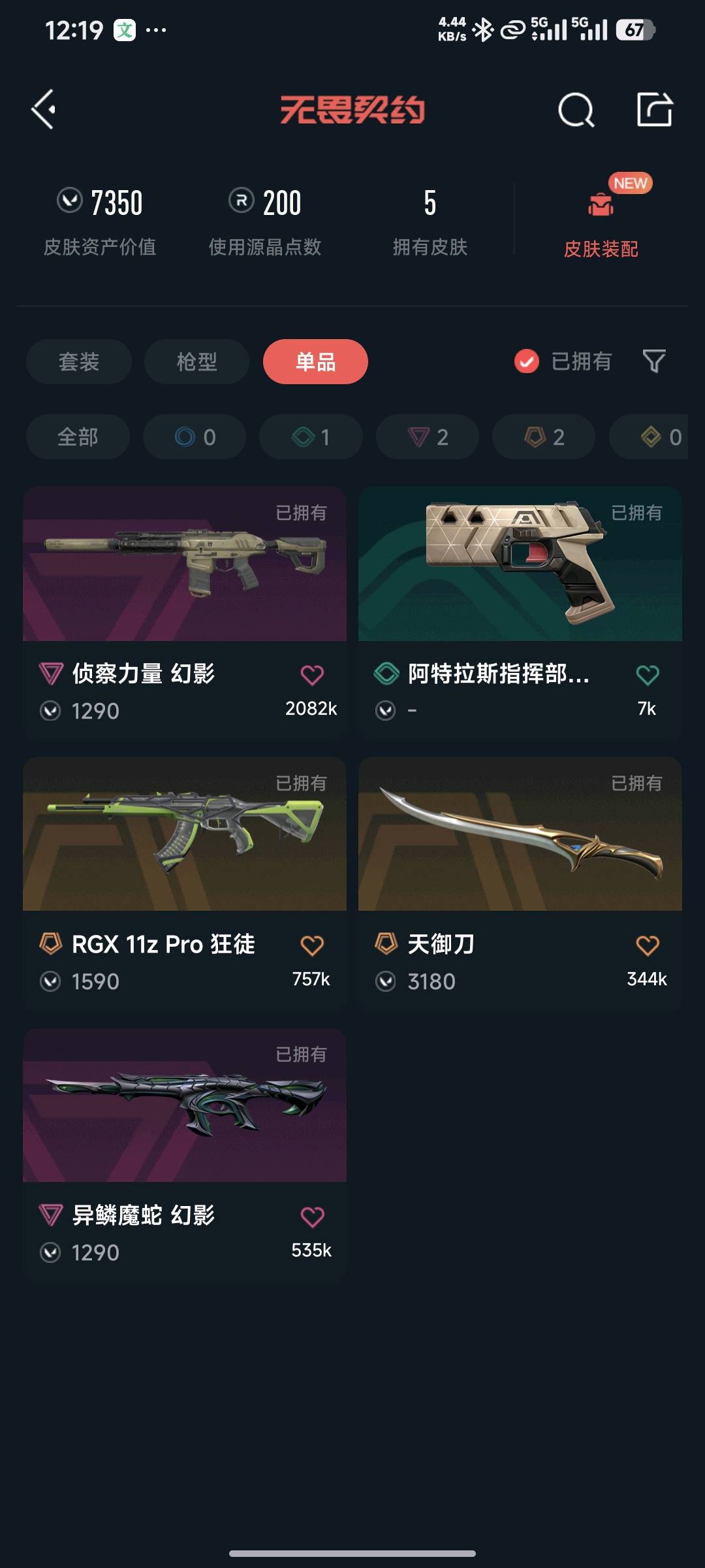 英雄13 武器皮肤数量5;异鳞魔蛇 幻影,侦察力量 幻影,RGX 11z Pro 狂徒,