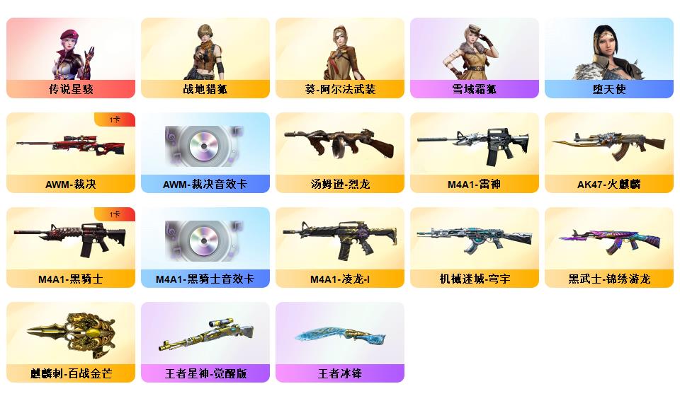 【传说星骇】【传说圣谕】【王者星神】北部山西一区 可排位【AWM裁决+裁决音效卡+百城联赛天津皮肤】【6烈龙】【炼狱秦师+迷你钢铁终结者】【宙斯套装】【黑骑士音效卡 AWM昌龙怀旧音效卡】【传说圣谕 火麒麟 雷神 黑骑士 黑武士锦绣游龙 机械迷城穹宇 王者星神 烈龙】【传说星骇+满配葵阿尔法武装+满配乔伊教练+满配雪域霜狐+战地猎狐+云海玲珑】《永久ac 永久工具钳 永久手雷包》各种道具详情看截图、低价