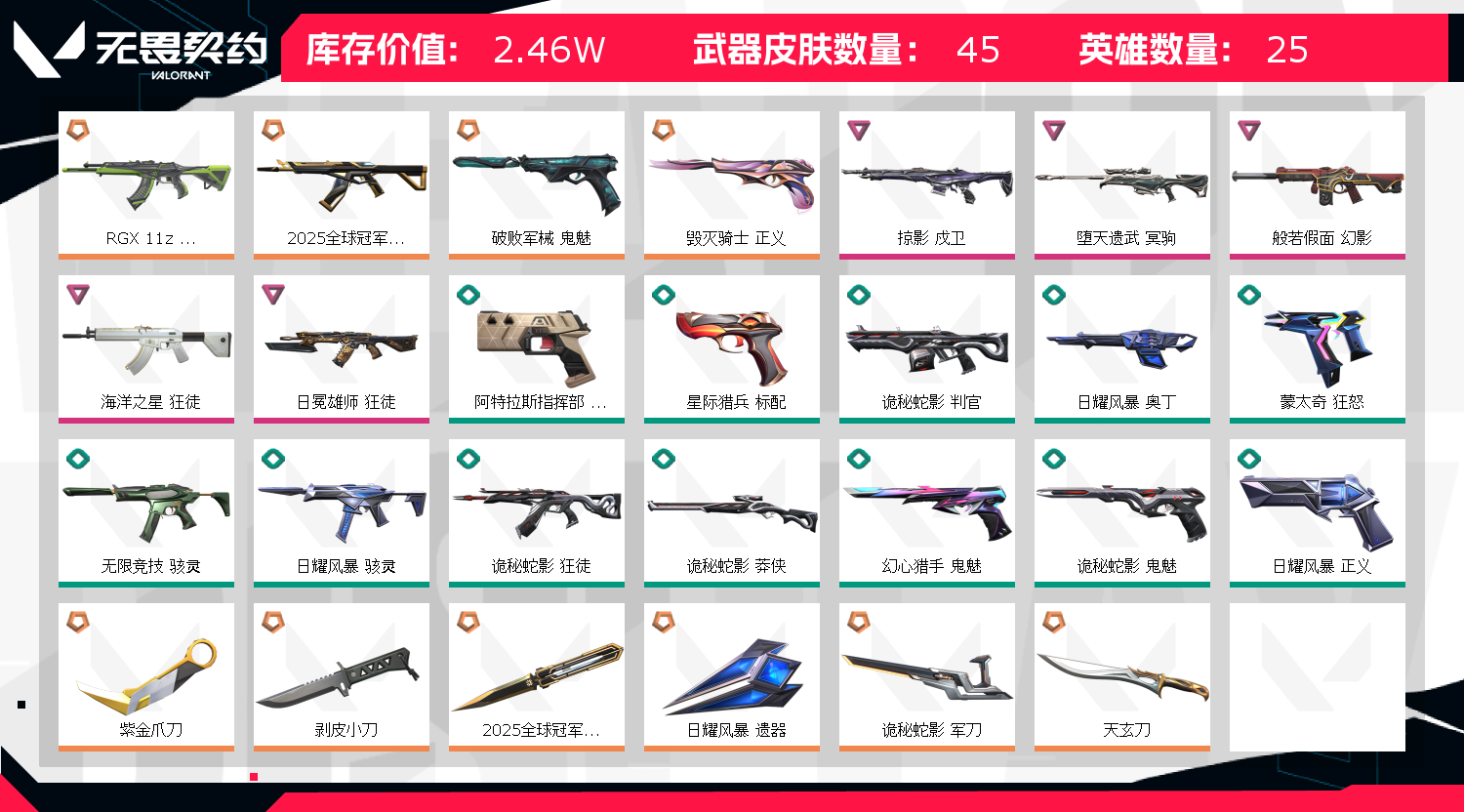 • 皮肤资产价值: 24630