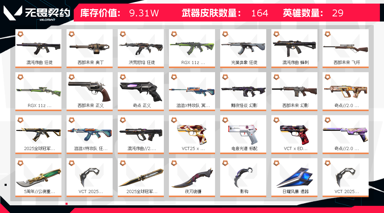 • 皮肤资产价值: 93100