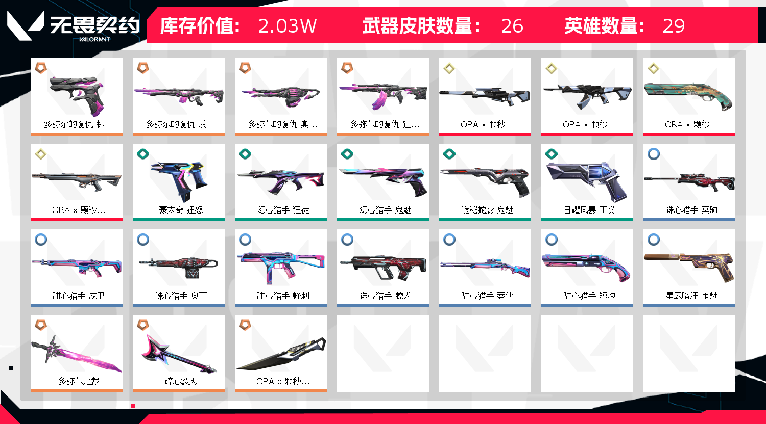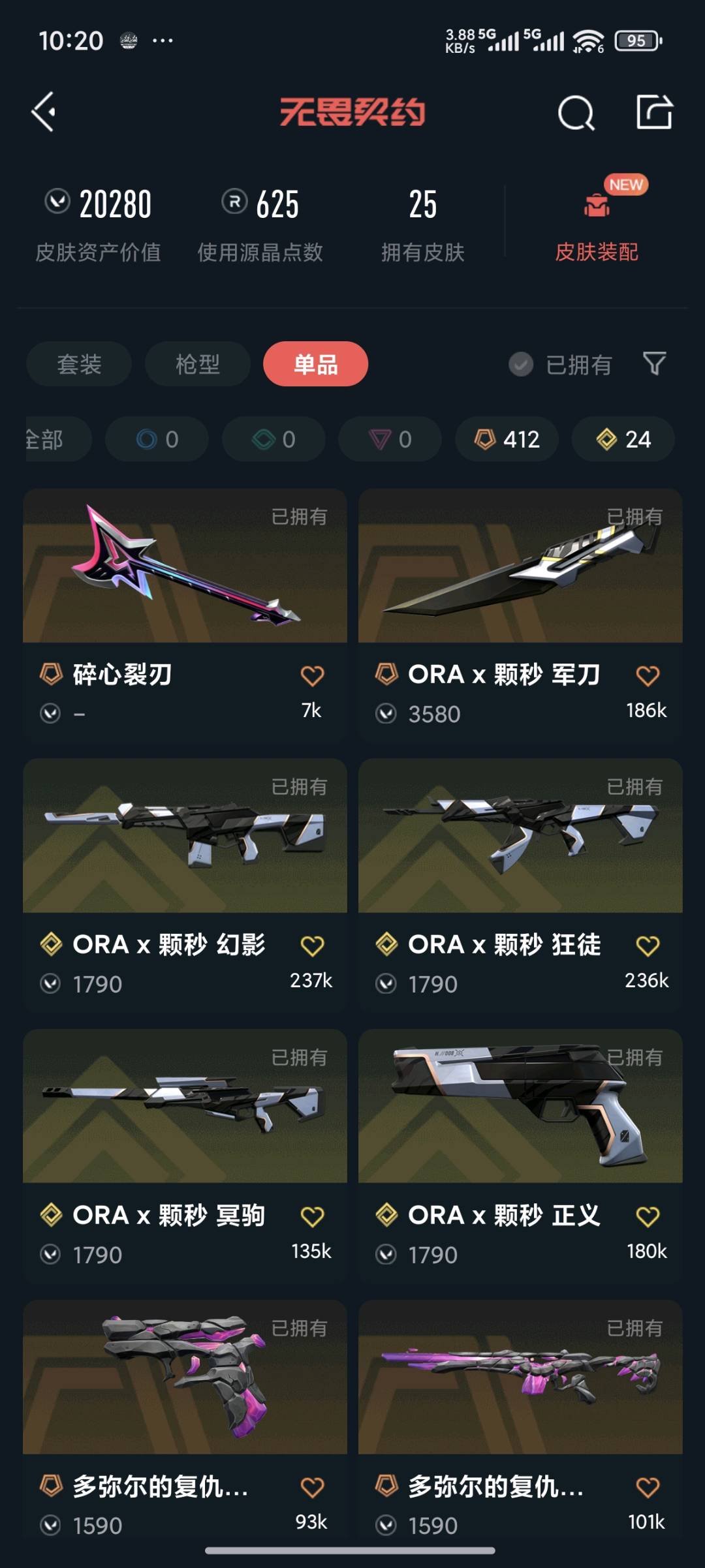• 皮肤资产价值: 20280