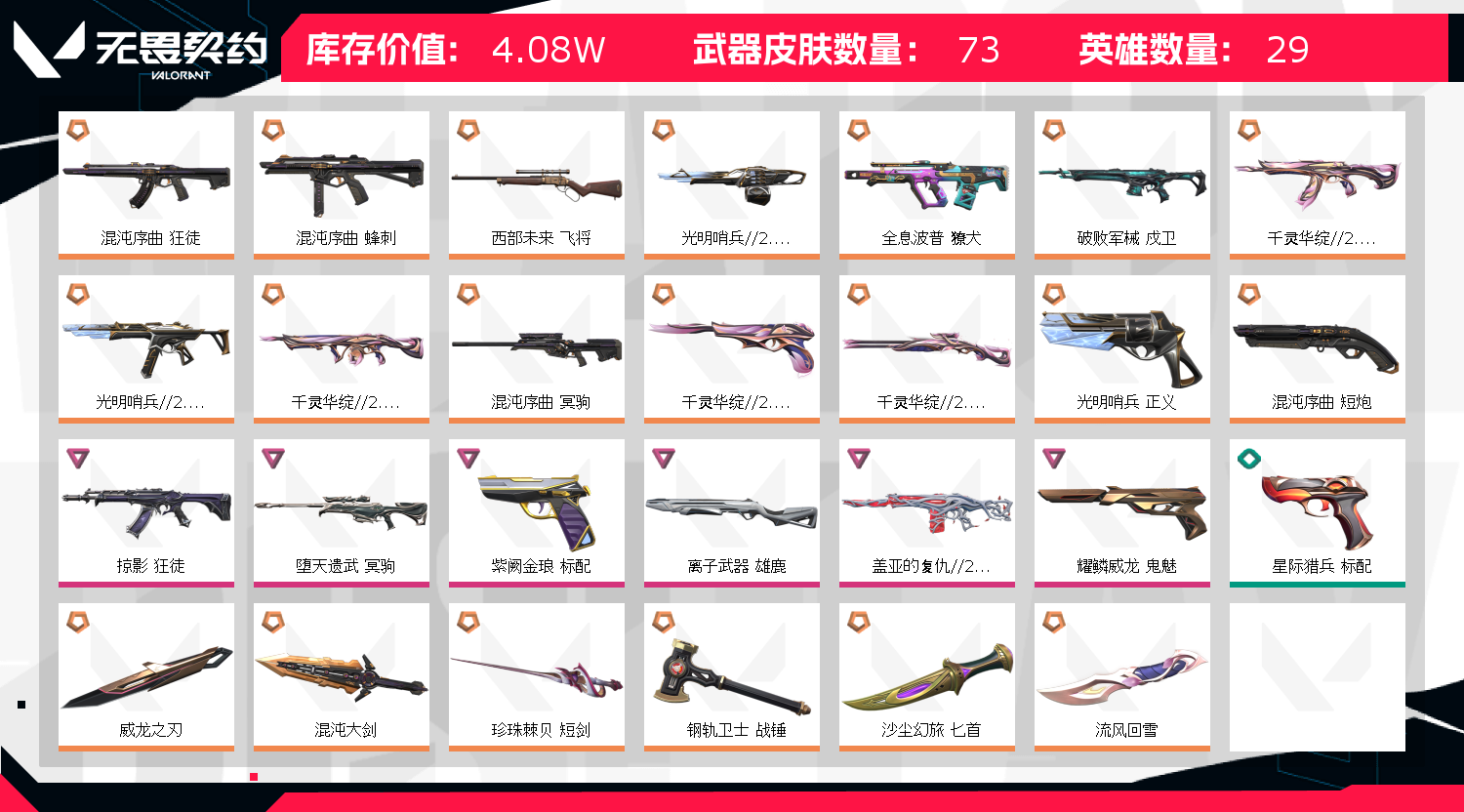 • 武器皮肤数量: 73