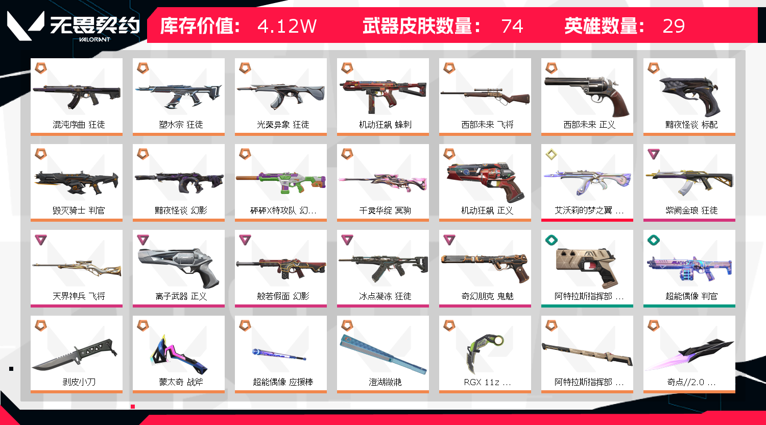 • 皮肤资产价值: 41210