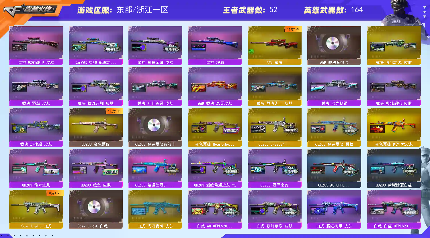 首页 > 租号大厅 > 穿越火线 > 东部/浙江一区 > 超核雷神光海夜岚白虎幻神21皮❤满图鉴-满音效❤Ep活动全穿妮妮❤5特4暴5cop顶配副手❤泡象双赋