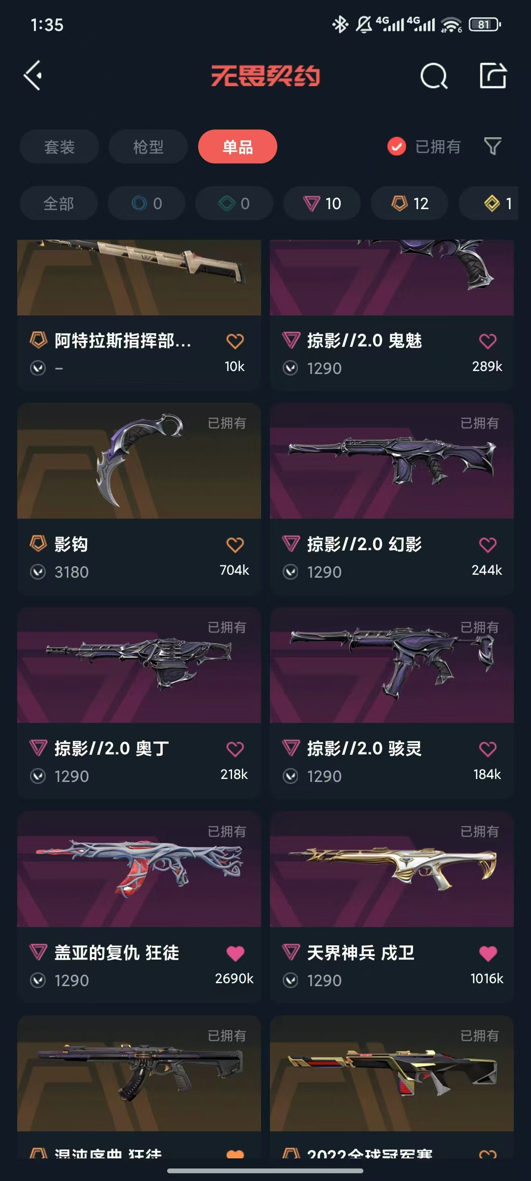 首页 > 租号大厅 > 无畏契约-wegame > wegame/wegame > 掠夺2.0套 22冠军套 盖亚混沌掠夺光荣异象神罚AK 侦查m4 离子战神 猫猫奥丁 剥皮小刀 太极