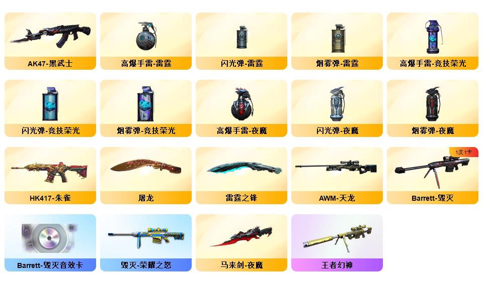 40V王者幻神/炫/朱雀/QBZ蔷薇/毁灭音效+荣耀之怒/黑骑士音效/六修罗/火麒麟百城皮肤/雷神机甲刑天皮肤/雷霆四件套/夜魔四件套/具备挑战强化武器/可排位