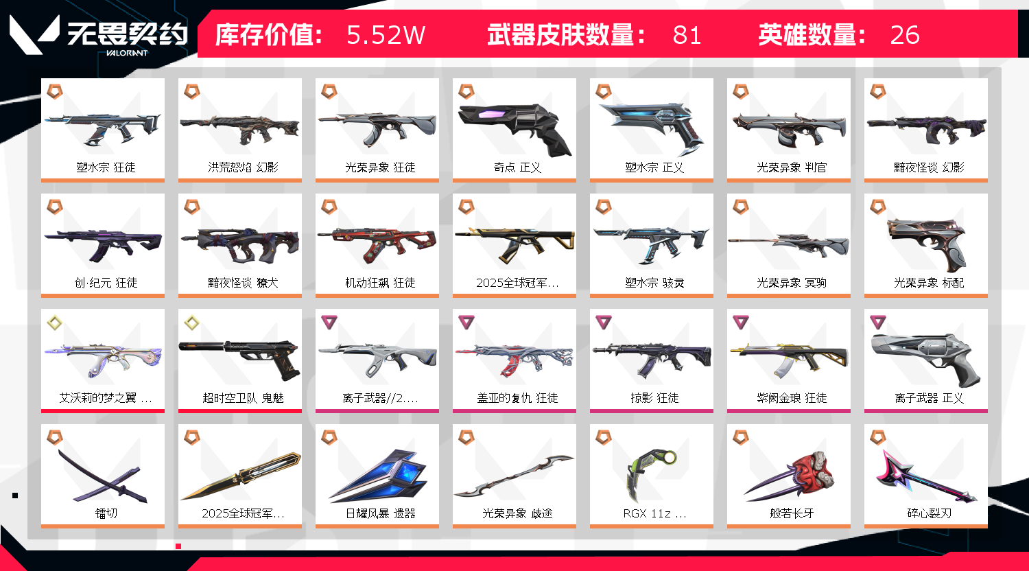 冻结秒解⚡6w库25冠军套光荣套⚡ak:猫猫塑水盖亚离子掠影创纪元⚡显卡爪镭切影刃⚡幻影黯夜;镭切,盖亚的复仇 狂徒,掠影 狂徒,洪荒怒焰 幻影,紫阙金琅 狂徒,塑水宗 狂徒,光荣异象 狂徒,
