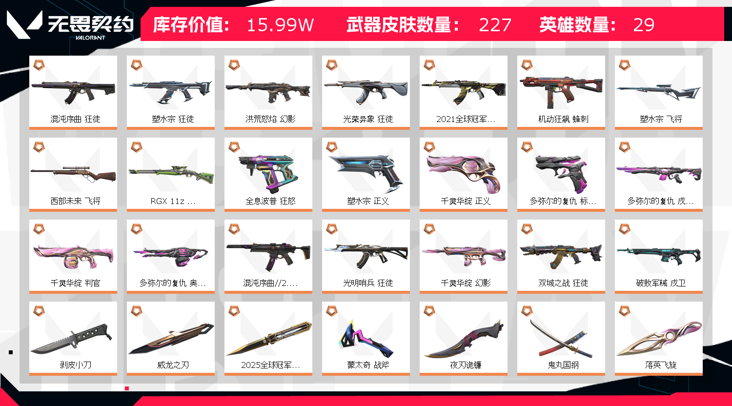 【友情提醒:由于无畏契约处罚机制更新,排位中途退出会导致封号,我们会根据违规时间对涉事下单账号进行处罚】且玩且珍惜,祝老板玩得愉快!喜欢记得收藏好评 A 毁号,涉及毁坏虚拟财产罪及计算机安全罪,请文明游戏素质游戏,让我们共建美好租号平台. B 请勿恶意挂机、顶号等行为将被拉黑无法再次下单。 C 进入游戏后中途请勿退出登陆,否则无法再次上号。 D 部分账号由于异地登录可能会出现密码错误提示,通常再尝试5-6次后可上号 |||||||||喜欢本账号请点 ☆收藏☆ 方便下次租用,谢谢光临惠顾|||||||||;剥皮小刀,威龙之刃,盖亚的复仇 狂徒,掠影 狂徒,源能者娱乐系统 幻影,侦察力量 幻影,洪荒怒焰 幻影,