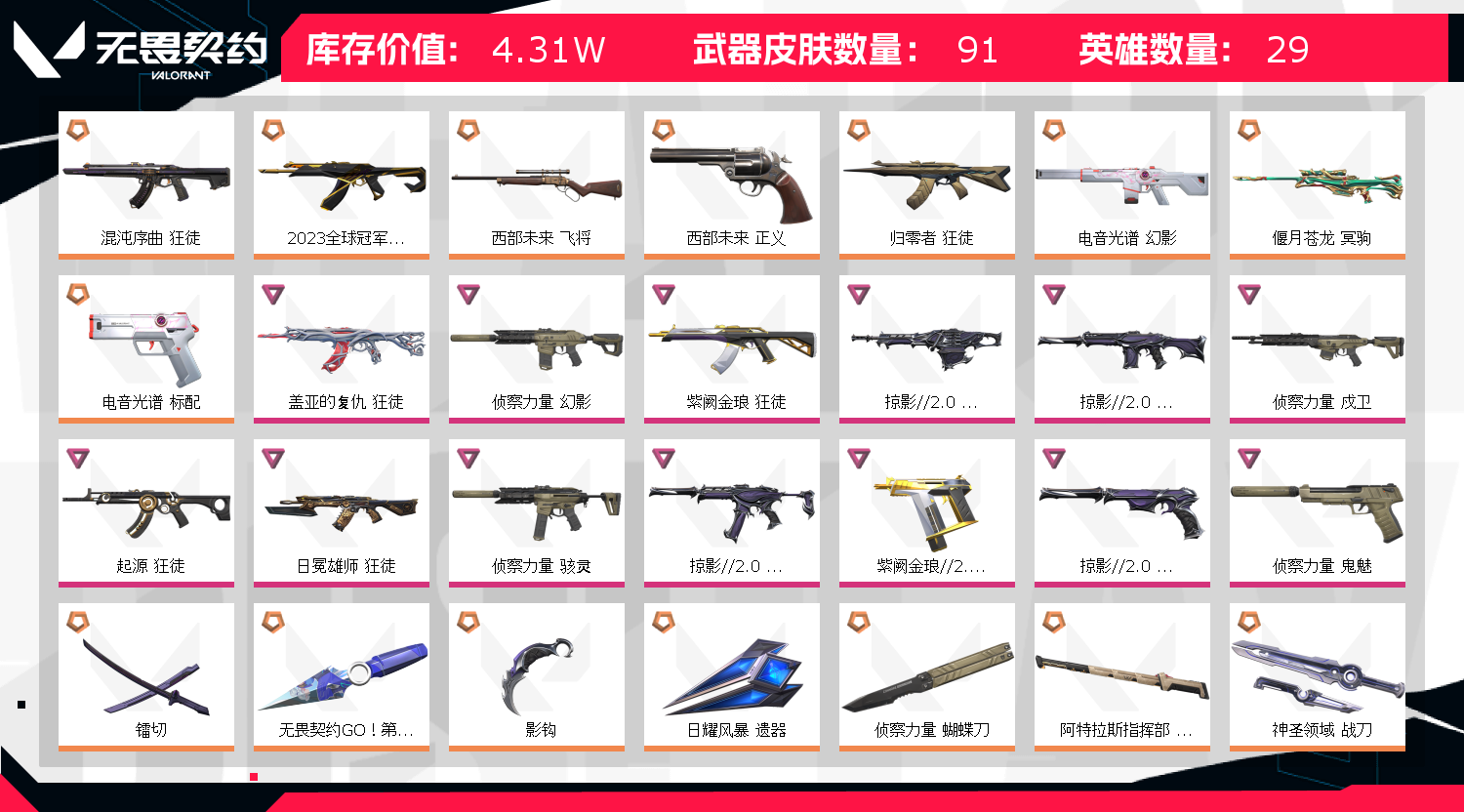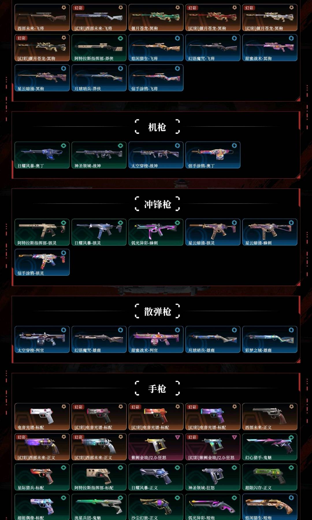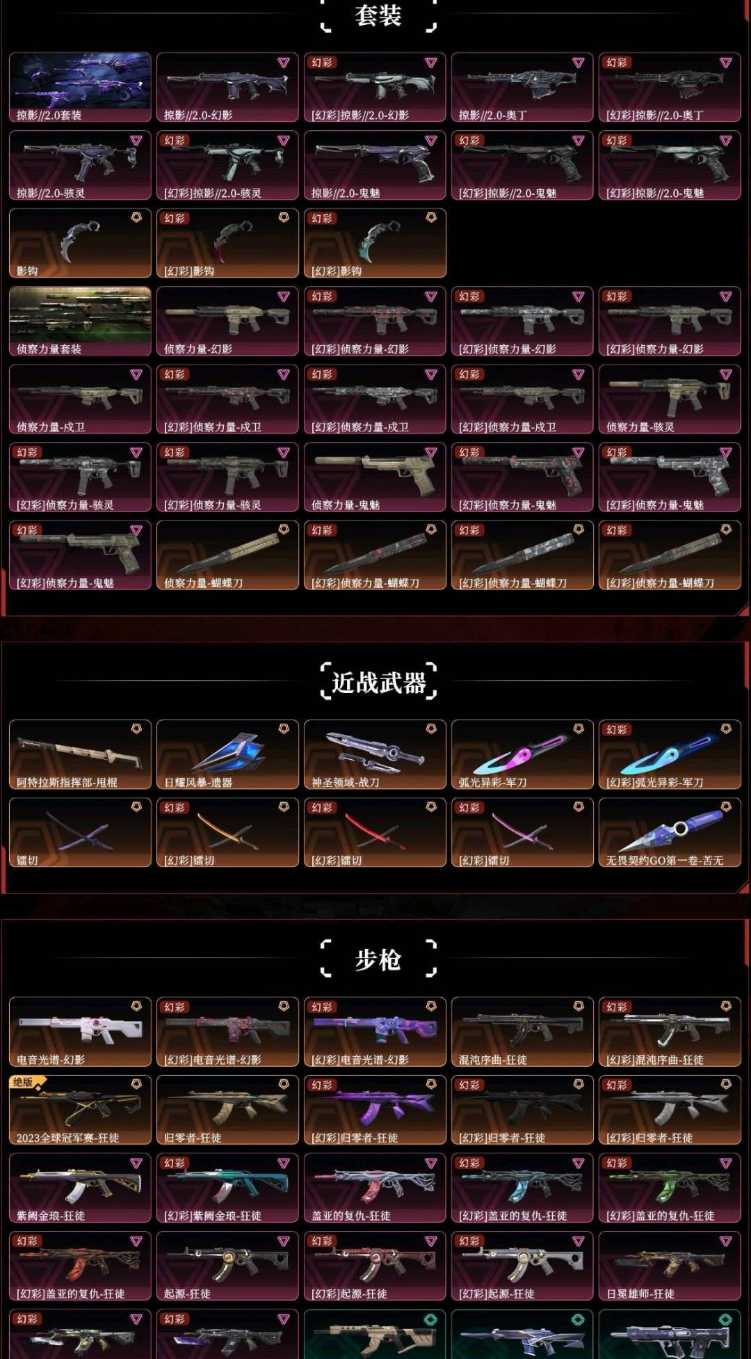 掠影2.0套装。侦查套装,镭射影勾2023冠军狂徒;镭切,盖亚的复仇 狂徒,侦察力量 幻影,紫阙金琅 狂徒,混沌序曲 狂徒,2023全球冠军赛 狂徒,西部未来 飞将,