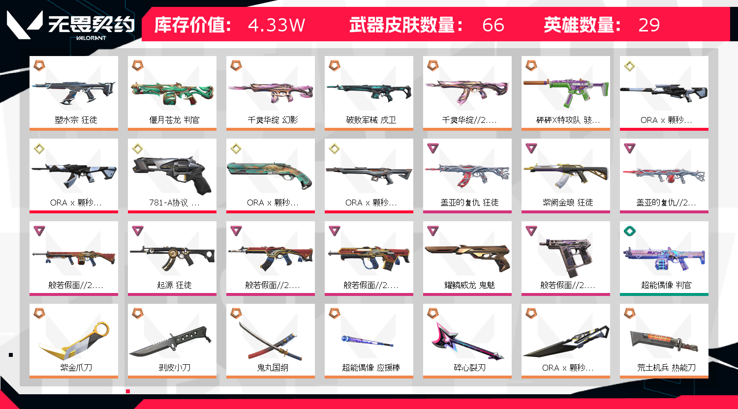 • 皮肤资产价值: 43310