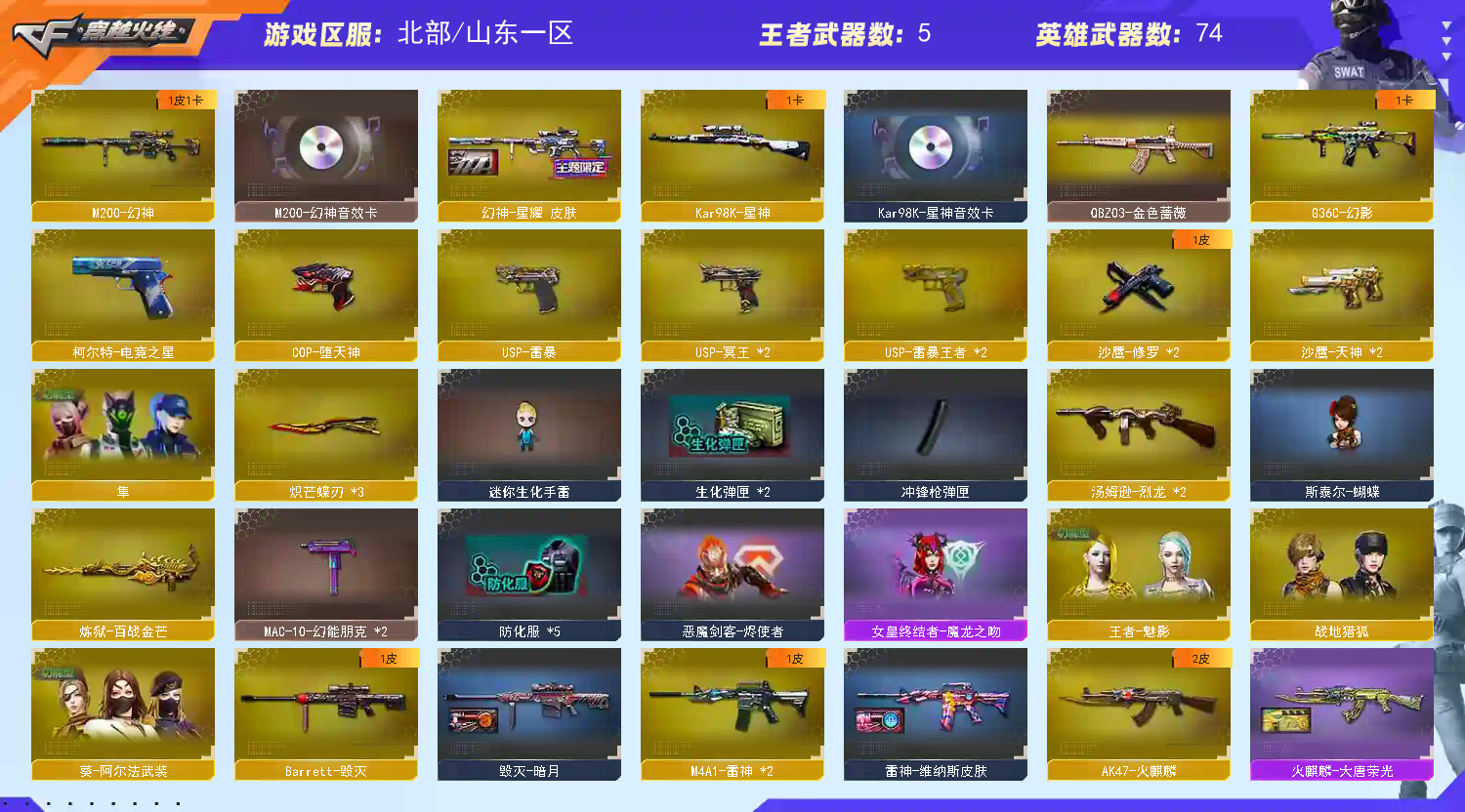 • 游戏区服:穿越火线 / 北部 / 山东一区