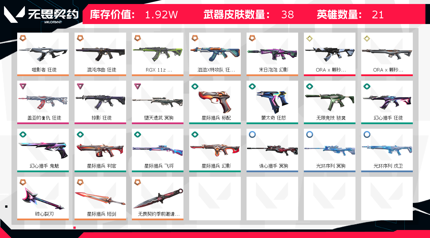 • 皮肤资产价值: 19180