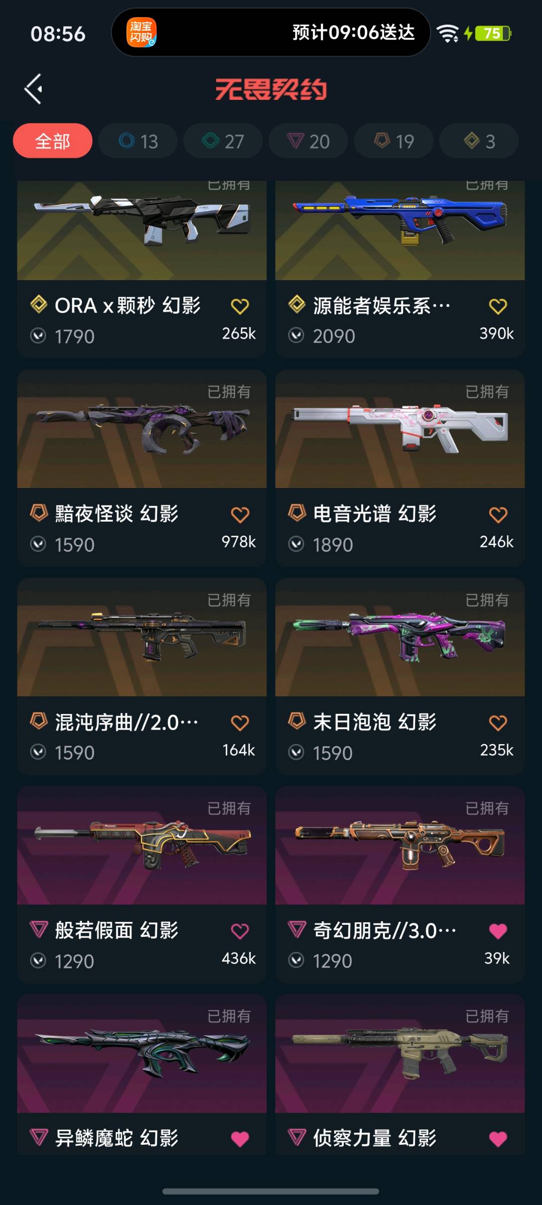21w库存3600r点,篆刀,马年套,怜悯,颗秒套,25冠军。混沌流脓光荣狂徒,侦查恶鬼蛇年幻影,堕天遗武冥驹,紫金爪,黑波,掠夺爪,影刃等热门皮肤。请勿开挂挂机;黑波之刃,紫金爪刀,剥皮小刀,威龙之刃,上古龙炎 判官,虚空遗器 狂徒,掠影 戍卫,