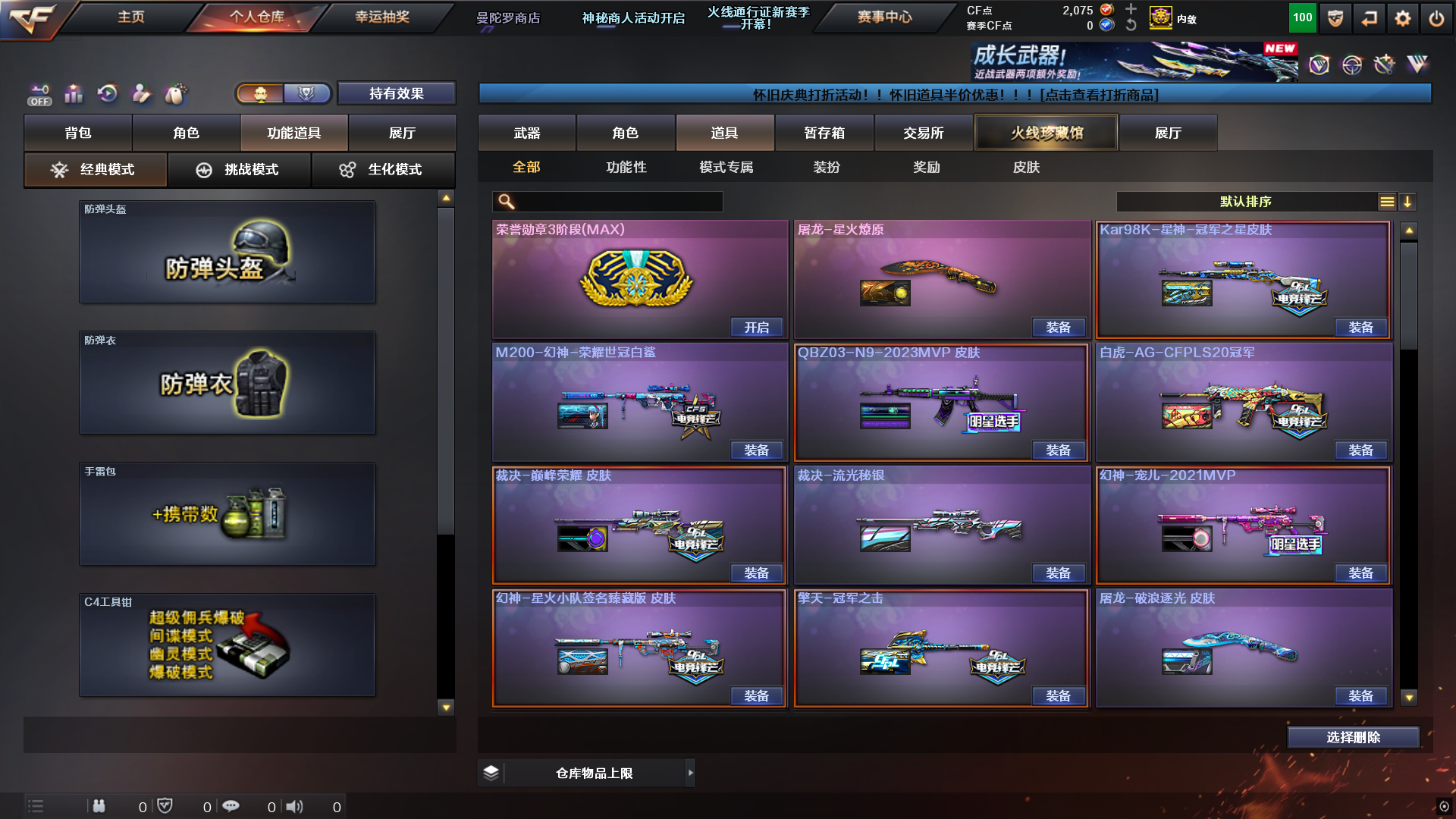 全装号;USP-雷暴,荣耀世冠-柯尔特,柯尔特-荣耀世冠白鲨2023,柯尔特-冠军之特,炽芒蝶刃,Knife-冠军之刃,QBZ03-金色蔷薇,