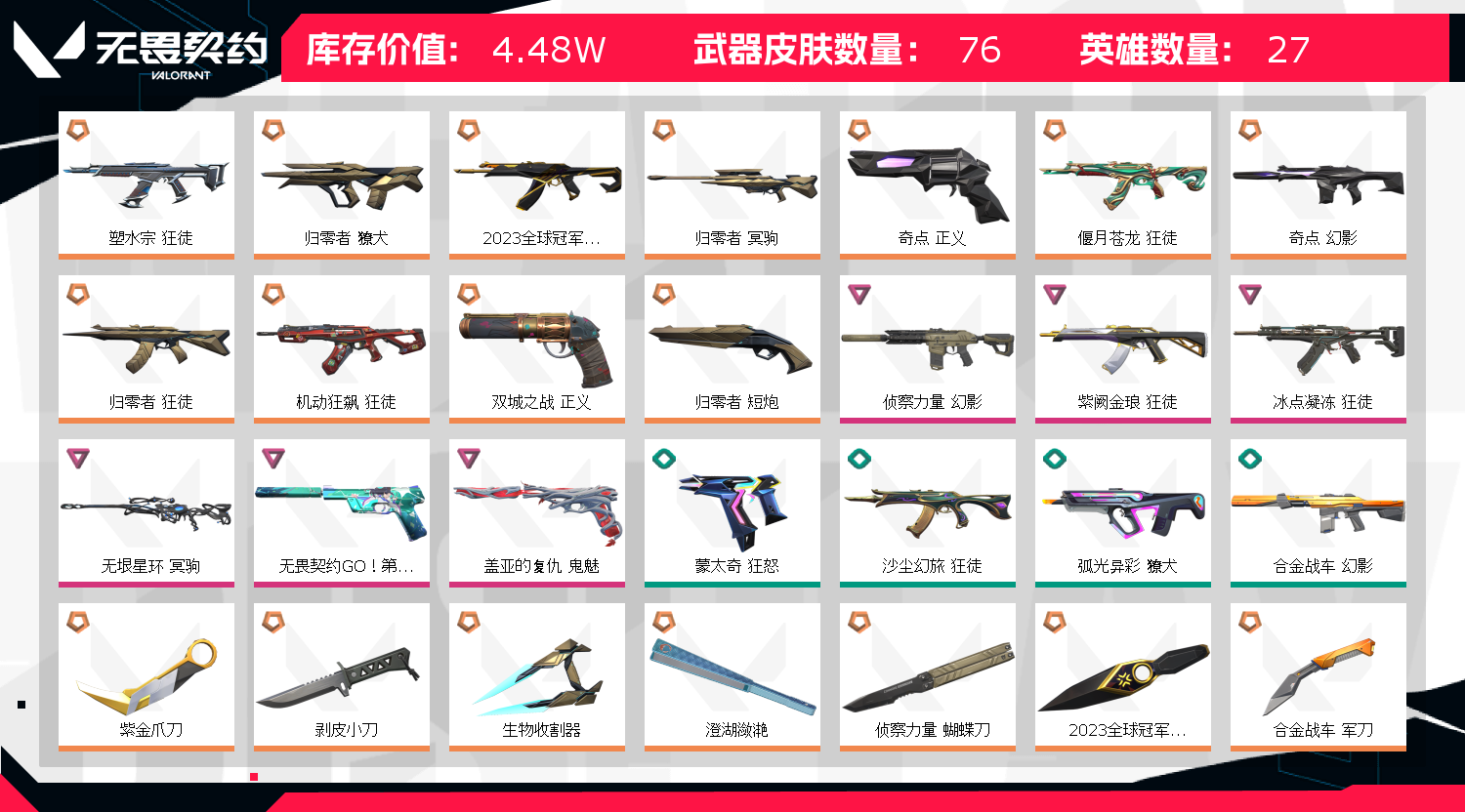 • 武器皮肤数量: 76