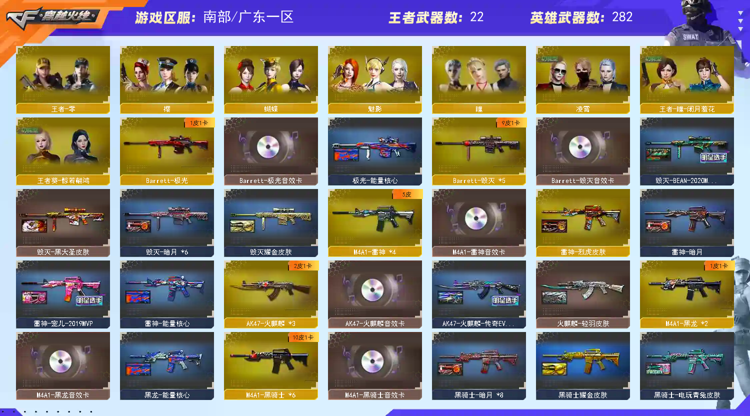 【广东一区】【可排位】【新锐1】【VIP6】【V武器数292】【幻神三件套】【幻神1皮】【白虎三件套】【6烈龙】【斯泰尔-蝴蝶】【死亡之眼】【6盘龙】【竞技荣光套装X9套】【夜魔套装X7套】【堕天神套装X7套】【堕天神套装X7套】【雷暴套装X7套】【雷霆套装X8套】【幻兽套装X5套】【传说圣灵】【QBZ95-幻兽】【破空枪刃】【沙鹰-幻兽】【高爆手雷-幻兽】【闪光弹-幻兽】【烟雾弹-幻兽】【M200-幻神】【幻神-宠儿-2021MVP】【M200-幻神音效卡】【M200-竞技荣光】【王者幻神-觉醒版】【王者星神】【AWM-裁决】【Scar Light-白虎】【Scar Light-白虎-暗星】【Scar Light-白虎音效卡】【QBZ03-金色蔷薇】【QBZ03-金色蔷薇音效卡】【M4A1-雷霆】【AK47-雷暴】【HK417-朱雀】【M4A1-堕天神】【M4A1-夜魔】【USP-雷暴】【柯尔特-竞技荣光】【破空枪刃】【沙鹰-幻兽】【雷霆之契】【COP-堕天神】【破空枪刃-夜魔】【加特林-炼狱】【RPK-盘龙】【汤姆逊-烈龙】【斯泰尔-蝴蝶】【死亡之眼】【春】【电竞教官-云悠悠】【蝴蝶】【葵】【凌霄】【迷迭香】【瞳】【王者-零】【王者-瞳-闭月羞花】【王者葵-惊若翩鸿】【王者玲珑】【王者玲珑-小乔】【樱】【炫】【魅影】【空】【M4A1-雷神】【雷神-宠儿-2019MVP】【雷神-烈虎皮肤】【雷神-能量核心】【雷神-暗月】【雷神-源计划2.0专属 皮肤】【M4A1-雷神音效卡】【AK47-火麒麟】【AK47-火麒麟-传奇EVEN】【火麒麟-轻羽皮肤】【AK47-火麒麟音效卡】【M4A1-黑骑士】【黑骑士耀金皮肤】【黑骑士-暗月】【黑骑士-电玩青兔皮肤】【M4A1-黑骑士音效卡】【M4A1-黑龙】【黑龙-能量核心】【黑龙-暗月】【M4A1-黑龙音效卡】【Barrett-毁灭】【毁灭-BEAN-2020MVP】【毁灭耀金皮肤】【毁灭-暗月】【毁灭-黑大圣皮肤】【Barrett-毁灭音效卡】;USP-雷暴,电竞教官-云悠悠,RPK-盘龙,QBZ03-金色蔷薇,M200-幻神,Scar Light-白虎,