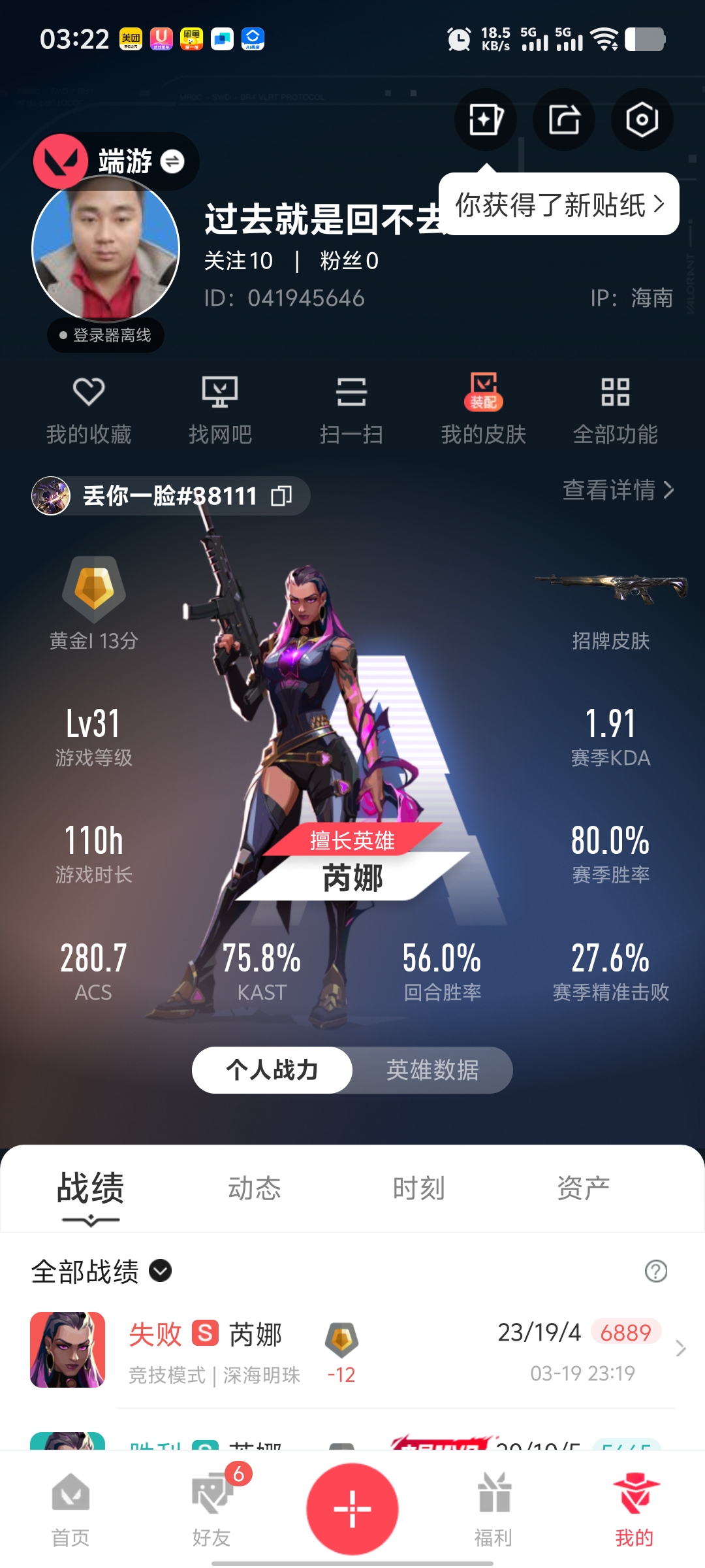 • 皮肤资产价值: 0