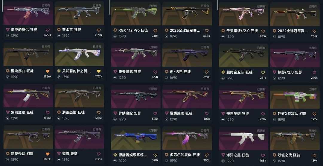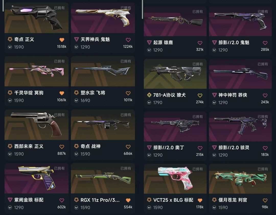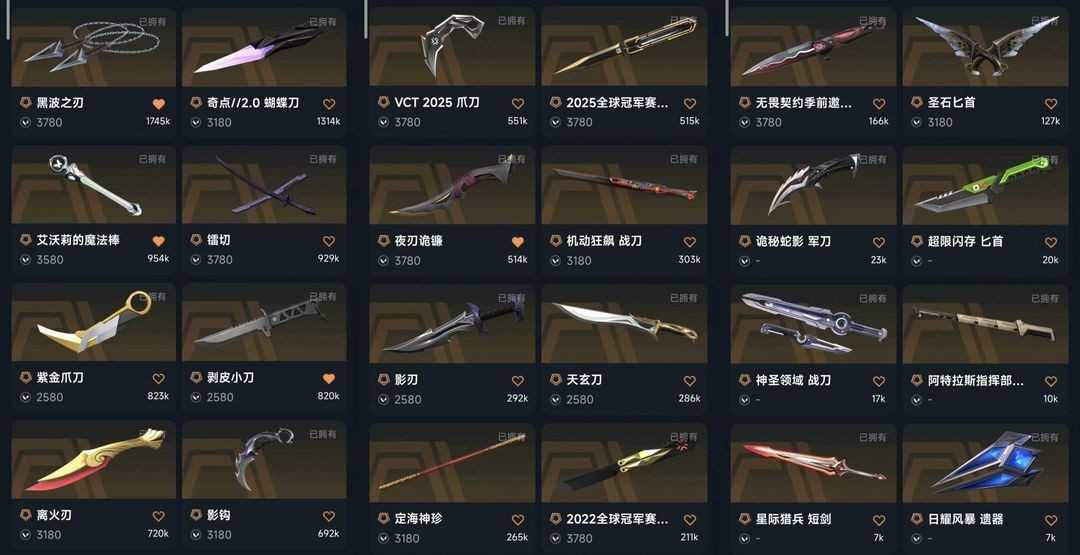 可排12w✨离火刃✨悲悯之刃✨塑水宗狂徒✨黑波之刃✨22冠军套✨25冠军套✨镭切✨VCT爪刀✨