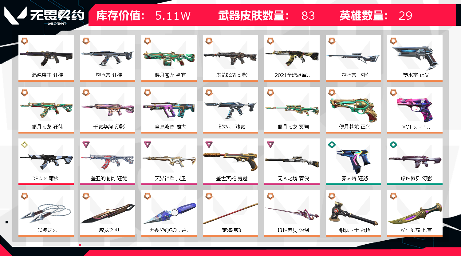 • 皮肤资产价值: 51125