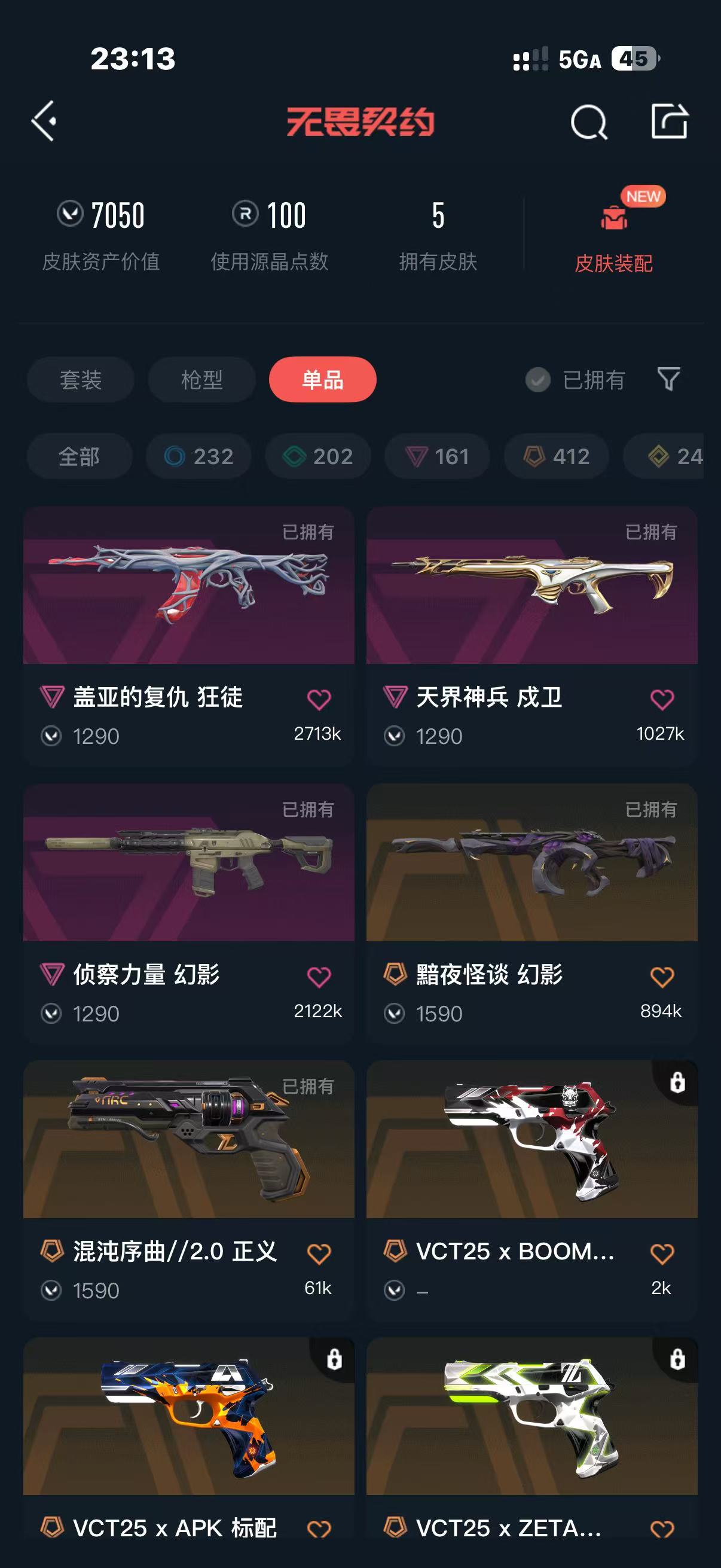 • 皮肤资产价值: 7050