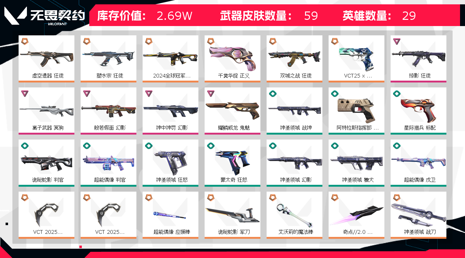 冻结三分钟内解除,短信通知重新上即可!喜欢收藏不迷路、游戏异常进小黑屋、时间不够请提前续租或者不要开局【套装】:VCT 2025 赛季套装 【英雄】:幻棱,炼狱,维斯,暮蝶,钛狐,壹决,铁臂,捷风,雷兹,幽影,不死鸟,贤者,猎枭,蝰蛇,零,芮娜,奇乐,尚勃勒,霓虹,斯凯,夜露,星礈,K/O,海神,盖可,黑梦,钢锁 【近战武器】:近战武器-奇点//2.0 蝴蝶刀,近战武器-VCT 2025 爪刀,近战武器-艾沃莉的魔法棒,近战武器-超能偶像 应援棒,近战武器-诡秘蛇影 军刀,近战武器-神圣领域 战刀 【狂徒】:狂徒-双城之战,狂徒-塑水宗,狂徒-虚空遗器,狂徒-掠影,狂徒-超能偶像,狂徒-诡秘蛇影 【幻影】:幻影-2024全球冠军赛,幻影-般若假面,幻影-神中神罚,幻影-神圣领域,幻影-聚合之力,幻影-末日之翼 【戍卫】:戍卫-超能偶像,戍卫-月球哨兵,戍卫-折光棱晶 【獠犬】:獠犬-神圣领域,獠犬-采蜜小蜂队 【冥驹】:冥驹-离子武器,冥驹-星云暗涌 【飞将】:飞将-聚合之力,飞将-末日之翼 【莽侠】:莽侠-诡秘蛇影,莽侠-月球哨兵 【战神】:战神-神圣领域,战神-采蜜小蜂队 【奥丁】:奥丁-末日之翼 【判官】:判官-超能偶像,判官-诡秘蛇影,判官-采蜜小蜂队 【雄鹿】:雄鹿-月球哨兵 【骇灵】:骇灵-星云暗涌 【蜂刺】:蜂刺-聚合之力,蜂刺-星云暗涌,蜂刺-折光棱晶 【标配】:标配-超能偶像,标配-折光棱晶 【VCT手枪】:标配-VCT25 x WOL 【正义】:正义-千灵华绽,正义-超限闪存,正义-纳米击,正义-月球哨兵 【鬼魅】:鬼魅-耀鳞威龙,鬼魅-诡秘蛇影,鬼魅-采蜜小蜂队,鬼魅-星云暗涌 【狂怒】:狂怒-神圣领域,狂怒-聚合之力 【短炮】:短炮-末日之翼 【卡面】:终章:激斗汉堡 卡面,进入射程 卡面,银弹猎手 卡面,《双城之战》拥抱 卡面,精灵大战 卡面,欢迎来到底城 卡面,南瓜盛典 卡面,修车达人 卡面,超限闪存 卡面,正义的化身 卡面,终章:生意人麦宝 卡面,铁之华 卡面,失而复得 卡面,时间到 卡面,最高舞台 卡面,复活专家 卡面,归乡 // 蝰蛇 卡面,超能偶像 卡面,生意人麦宝 卡面,声感陷阱设计图 卡面,钢锁工牌 卡面,战术小伙伴的夏日 卡面,采蜜小蜂队 卡面,聚合之力 卡面,梦幻奶茶 卡面,无畏契约:尚勃勒 卡面,源能反应 卡面,零点嗅探设计图 卡面,无畏契约GO!一卷:芮娜 卡面,无畏契约GO!一卷:零 卡面,沙尘幻旅 卡面,势不可挡//K/O 卡面,代号红色 卡面,新兵报到 卡面,V契约 卡面,无畏契约 卡面 【喷漆】:鼻尖上的蝴蝶 喷漆,嗨宝南瓜灯 喷漆,嘭! 喷漆,都算到了 喷漆,控场勿近 喷漆,小丑猫 喷漆,熊抱 喷漆,又被闪了 喷漆,终极羞辱 喷漆,超级粉丝 喷漆,黯兽卖萌 喷漆,捷风差距 喷漆,惊声尖叫 喷漆,五人成星 喷漆,超能偶像 喷漆,放我出去 喷漆,掩护我 喷漆,大佬发枪 喷漆,边缘试探 喷漆,拼一枪 喷漆,聚合之力 喷漆,采蜜小蜂队 喷漆,梦幻小队 喷漆,五个全都齐了 喷漆,致命优雅 喷漆,情绪控制 喷漆,双击点赞 喷漆,买装还是存钱 喷漆,胜利属于无畏契约 喷漆,GLHF 喷漆,无畏契约 喷漆 【挂饰】:终章:猫猫木乃伊 挂饰,悠闲鸡块 挂饰,伞绳 挂饰,《双城之战》小蛋糕 挂饰,第九季//第三幕 纪念币 挂饰,工具腰带 挂饰,无畏契约GO!一卷 芮娜 挂饰,无畏契约GO!一卷 零 挂饰,熔岩灯 挂饰,第九季//第二幕 纪念币 挂饰,薰衣草之心 挂饰,终章:这瓜保熟 挂饰,炼狱雪糕 挂饰,糖葫芦 挂饰,袖珍捷风 挂饰,冲上云霄 挂饰,超能偶像 挂饰,迷你浓缩 挂饰,这瓜保熟 挂饰,采蜜小蜂队 挂饰,第九季//一幕 纪念币 挂饰,聚合之力 挂饰,天外飞客 挂饰,《双城之战》魄罗 挂饰,无畏契约 纪念币 挂饰;VCT 2025 爪刀,虚空遗器 狂徒,掠影 狂徒,塑水宗 狂徒,2024全球冠军赛 幻影,离子武器 冥驹,千灵华绽 正义,