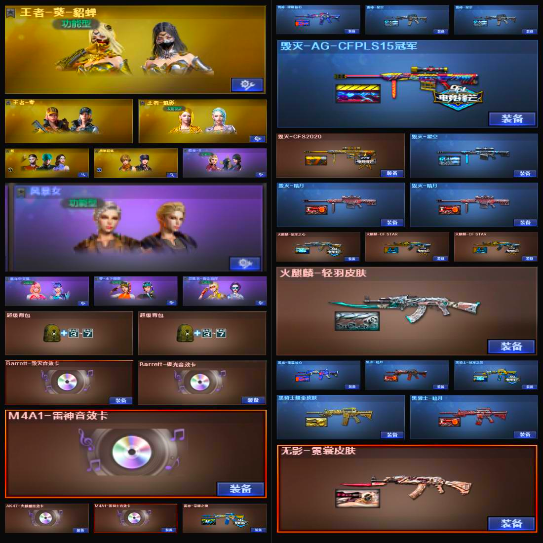 东部高端天花板 300V可排🔥幻神+白虎+朱雀+蝴蝶🔥全幻兽+夜魔+雷霆套+四防🔥冠军AG荣耀赛事CFS霓裳皮【江苏1区登录】【炫金稀有顶1V介意者勿租】【恶意投诉、撤单不想玩了租错号了等非帐号问题1律拉黑】【此号已备案请勿以身试法】 【重要套装】幻兽套装/雷霆套装/夜魔套/四防角色 【重要角色】_葵/_炫/王者零-传说之路/王者-葵-貂蝉/王者-魅影/王者-零/铁骑荣耀/零-水下丽影/灵狐者-黄金海岸 【英雄武器】_M200-幻神/Barrett-毁灭(5)/Barrett-极光(4)/Barrett-朱雀/barrett-金色蔷薇(3)/Barrett-暗月传说(2)/雷霆之怒/AWM-天龙/AWM-裁决(2)/M4A1-雷神(5)/M4A1-死神/M4A1-黑龙(3)/M4A1-千变/M4A1-黑骑士(3)/M4A1-武圣/M4A1-夜魔/M4A1-雷霆/M4A1-猎神(2)/王者之魄-觉醒版(2)/王者之势-觉醒版/HK417-朱雀/Scar Light-白虎/QBZ95-幻兽/AK12-天启(4)/AK47-火麒麟(5)/AK47-无影(4)/AK47-黑鲨/AK47-黑武士/AK-47-猩红传说(26)/AK47-机械迷城/AK47-B-战士/AK47-B-战神/AN94-超新星/QBZ03-金色蔷薇(2)/9A91-烈火(2)/RPK-盘龙(7)/汤姆逊-烈龙(8)/AA-12-雷霆(6)/加特林-炼狱(5)/COP-堕天神/雷霆之契(2)/沙鹰-天神(6)/沙鹰-修罗(4)/沙鹰-幻兽(3)/王者之魂-觉醒版/Glock18-武圣/麒麟刺(4)/龙啸(6)/王者之啸-觉醒版(2)/擎天(2)/王者之击-觉醒版/屠龙(4)/雷霆之锋(2)/马来剑-夜魔/女皇利刃-幻兽/斩神刀-雷暴/高爆手雷-幻兽(3)/高爆手雷-雷暴/高爆手雷-雷霆(8)/高爆手雷-夜魔(2)/烟雾弹-幻兽(3)/烟雾弹-雷暴/烟雾弹-雷霆(8)/烟雾弹-夜魔(2)/闪光弹-幻兽(3)/闪光弹-雷暴/闪光弹-雷霆(8)/闪光弹-夜魔(2) 【王者武器】王者之武/王者炎心/王者之翼(3)/玫瑰精灵-悦动(3)/王者之戮/王者之魄(3)/王者之怒(4)/炼狱-悦蓝(2)/烈龙-悦心/王者之锋(2)/王者之啸 【小人枪】火麒麟-绝迹/C.A.T/海滩汪汪-巴雷特/斯泰尔-蝴蝶/M37-葵/COP-旗袍/夺魂/降世魔童/迷你深渊冰龙/冰火魔兽/闪光弹-小乔 【其他重要武器】炫金武士/炫金骑士/炫金千变/炫金雷神(2)/炫金毁灭/炫金修罗/火麒麟-暗月/火麒麟-能量核心/黑武士-能量核心/激光毁灭者III/AK47-冰龙粉碎者/AK47-泰坦破坏者III/M4A1-XS-翔龙/AK47-B-十周年/9A91-2017万圣节/AK47-SS-9周年/M4A1-肯德基(2)/56式步枪-梨花/AK47-苍龙/9A91-蓝色骑士/M4A1-樱落/M4A1-樱(2)/AK12-幽灵/黄金AK-47(2)/AK-12-CFS2017纪念版(2)/火麒麟-桃园结义/M4A1-秘银赤龙(8)/AK47-QT/M14EBR-赤血龙魂(5)/M4A1-破空冰刃/AK47-破空冰刃(2)/G3A3-SS-枪王排位/凤凰之魂/AK47-万圣节2018(2)/金色小号/M4A1-电音/AK47-绚樱/M4A1-SS-枪王排位/Scar-Light-赤血龙魂(3)/AK12-枪王排位/神罚(2)/凤凰之力/AWM-A/FN弩炮-CFS2017纪念版/蓝色魅影/M200-万圣节(2)/98K-蓝色骑士/破天九龙/AWM-S/M200-赤血龙魂(8)/暗金AWM/M200-大黄蜂/AWM-卡通/Barrett-怒火大圣/雷蛇AWM/AWM-圣诞/M200-万圣节2018(2)/AWM-Pink/AWM-枪娘/巨龙咆哮Ⅲ/KAC-耀龙/MG4-蓝色骑士/KAC-赤烛/斯泰尔-巧克力/雷蛇冲锋枪/斯泰尔-CFS2017纪念版/EVOⅢ-黑金传说/EVO III-赤血龙魂(2)/SPAS-12-雷电核心/阐释者III/凤凰之灵(2)/Cop357-赤龙/Anaconda-黑金神龙/新USP-枪王排位奖励(7)/愤怒公牛左轮-枪王排位/沙鹰-枪王排位(3)/沙鹰-万圣节2018(2)/无畏之矛/收割者-枪王排位/尼泊尔军刀-9周年/蝴蝶刀-枪王排位/猫猫手套/军用铁锹-飞龙在天/丛林匕首-卧龙(4)/啸天/胜利奖杯闪光弹-枪王排位/红色诅咒娃娃手雷/胜利奖杯烟雾弹-枪王排位/手雷-能量核心(2)/胜利奖杯手雷-枪王排位/闪光弹-枪王排位(4) 【重要武器皮肤】极光-能量核心/巴雷特-毁灭-CFPL冠军/火麒麟-冠军之心/黑骑士-冠军之势/龙啸-冠军之啸/毁灭-CFS2020/毁灭-星空/毁灭-暗月/AWM-天龙-传奇70KG/AWM-天龙-传奇白鲨/天龙-秘银/天龙-能量核心/雷神-荣耀之魄/雷神-能量核心/雷神-星空/黑骑士耀金皮肤/黑骑士-暗月/黑龙-暗月/黑龙-能量核心/火麒麟-CFSTAR/火麒麟-AG/火麒麟-轻羽皮肤/无影-暗月/无影-霓裳皮肤/无影-能量核心/无影耀金皮肤/死神-秘银/战神-流金岁月皮肤/战神-紫绶金章皮肤/战神-粉色甜心皮肤/天启-暗月/烈龙-星空/炼狱-星空/修罗-能量核心/天神-暗月 【重要光效】Barrett-毁灭金色光效/炼狱-悦蓝金色光效/王者之啸金色光效/王者之怒金色光效/王者之翼金色光效/王者之魄金色光效/AK47-火麒麟蓝色光效/AK47-黑武士蓝色光效/AN94-超新星蓝色光效/AWM-天龙蓝色光效/M4A1-死神蓝色光效/RPK-盘龙蓝色光效/加特林-炼狱蓝色光效/屠龙蓝色光效/巴雷特-毁灭蓝色光效/擎天蓝色光效/汤姆逊-烈龙蓝色光效/沙鹰-修罗蓝色光效/麒麟刺蓝色光效/龙啸蓝色光效/AWM-天龙红绿色光效/Barrett-极光红绿光效/M4A1-雷神红绿光效/汤姆逊-烈龙红绿色光效/M4A1-雷神紫橙光效/M4A1-黑骑士紫橙光效/M4A1-武圣紫色光效 【重要音效卡】Barrett-极光音效卡/M4A1-黑骑士音效卡/火麒麟音效卡/毁灭音效卡/雷神音效卡 【重要戒指】8周年戒1/8周年戒2/龙眼(死神)/龙眼(鹰)/皇龙戒/金蛇戒/银蛇戒/16赛季纪念戒指-枪王耀金/17赛季纪念戒指-耀金/18赛季纪念戒指-耀金/20赛季纪念戒指-耀金/21赛季纪念戒指-耀银(拇指)/22赛季纪念戒指-耀铜(食指)/22赛季纪念戒指-耀银(拇指)/23赛季纪念戒指-耀铜(食指)/23赛季纪念戒指-耀银(拇指)/24赛季纪念戒指-耀银(食指) /24赛季纪念戒指-耀银(拇指);RPK-盘龙,QBZ03-金色蔷薇,M200-幻神,Scar Light-白虎,