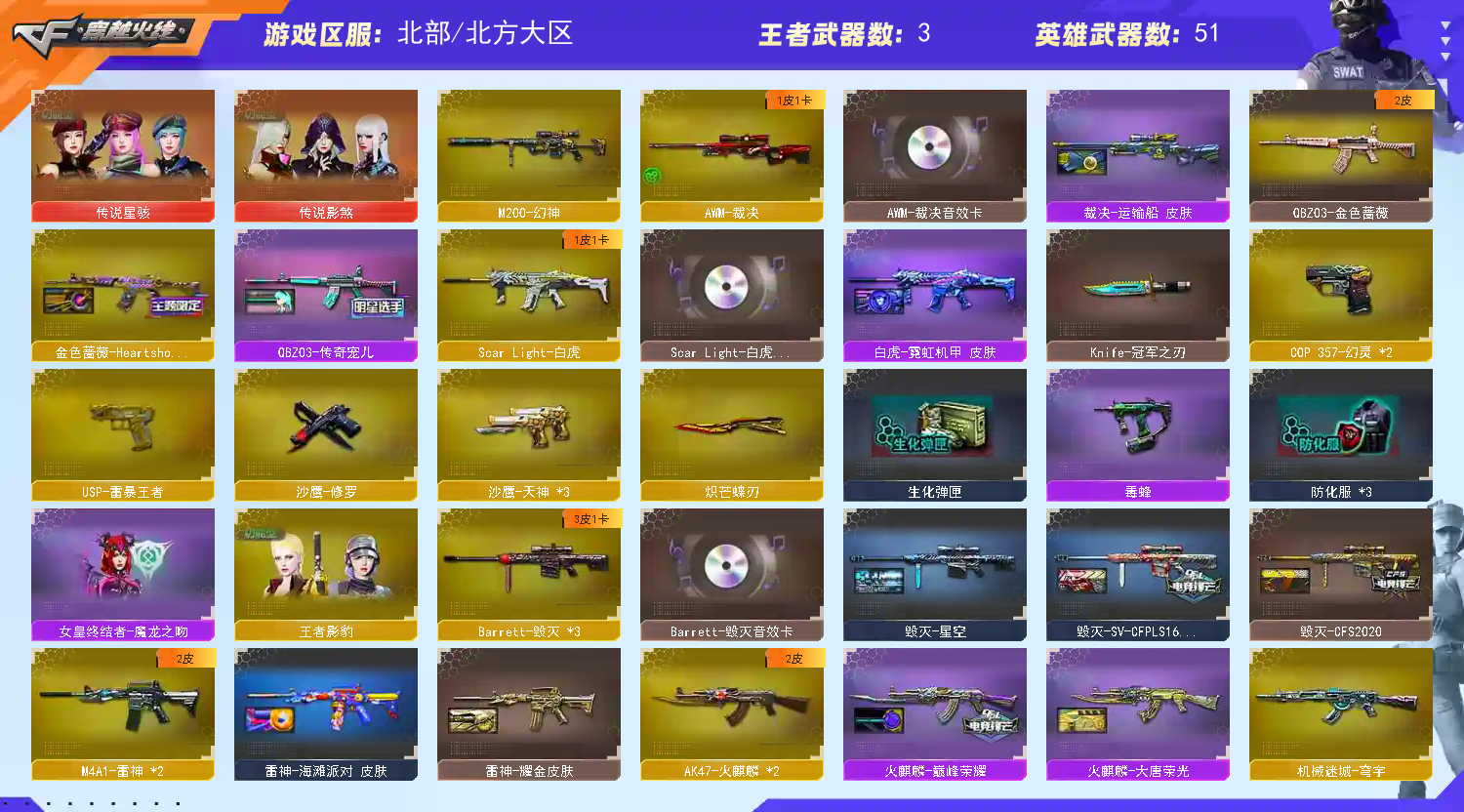 • 游戏区服:穿越火线 / 北部 / 北方大区