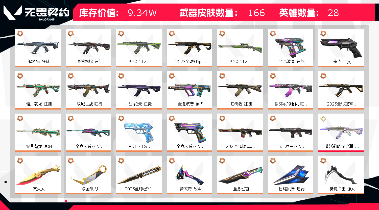 • 皮肤资产价值: 93445