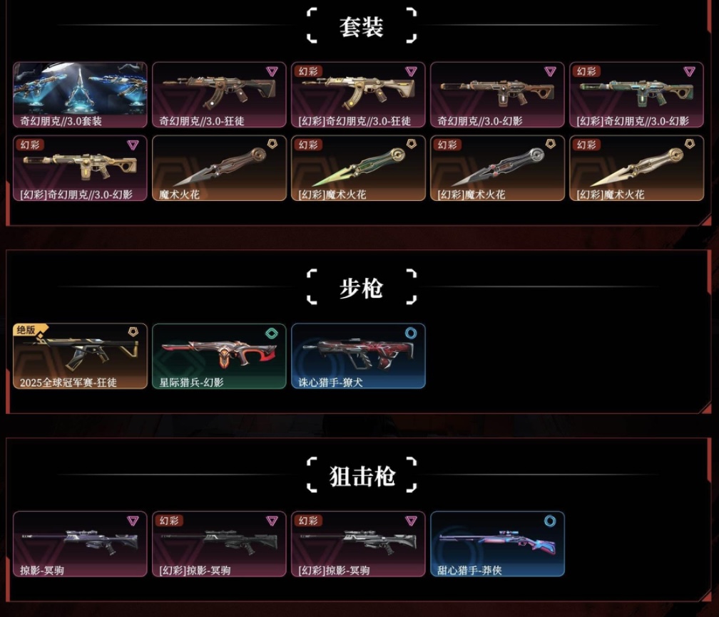 可排下三段🏆25全冠军套🏆奇幻朋克全套🏆魔术火花刀【T0手感】🏆掠影大狙🏆VCT限定标配