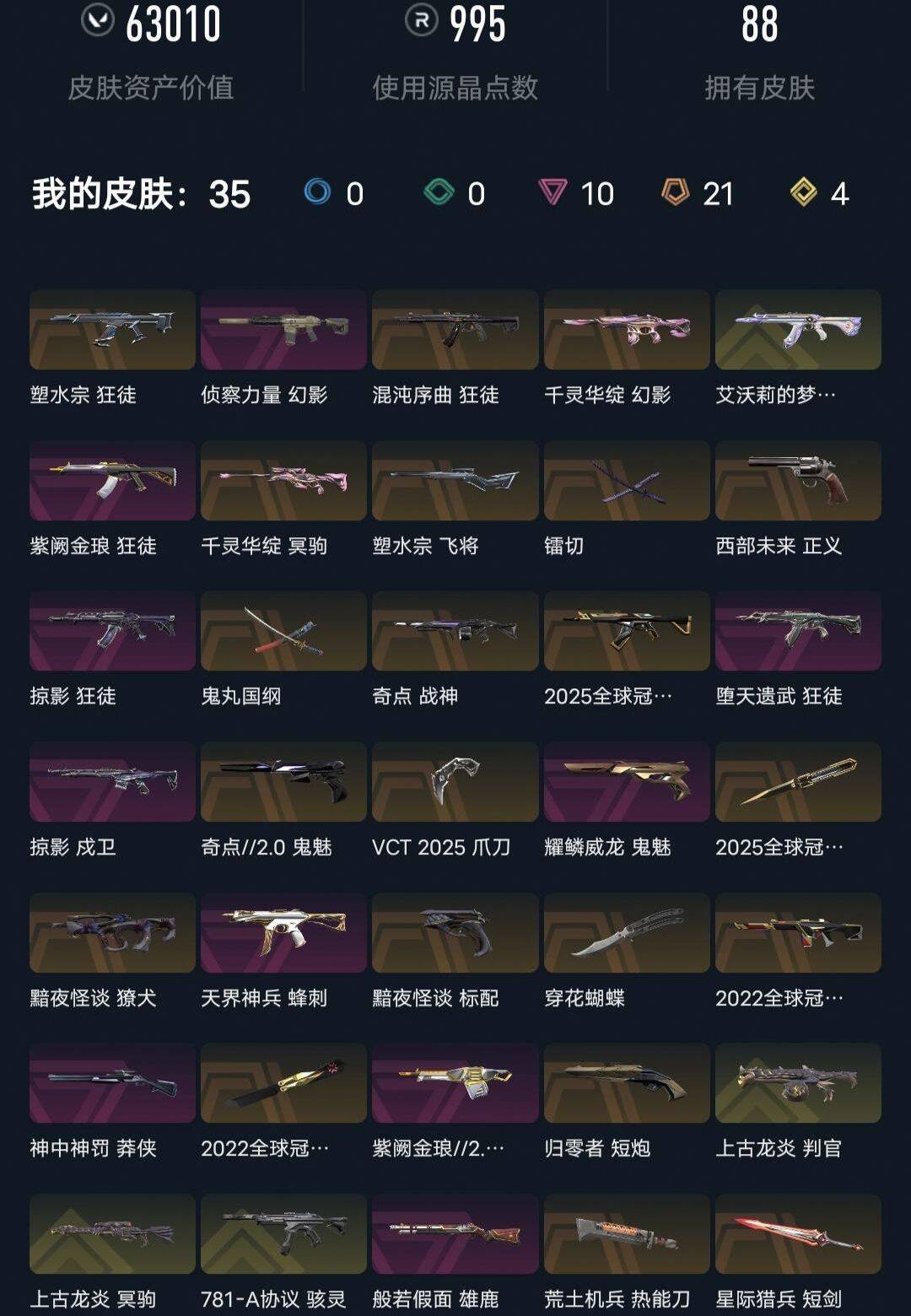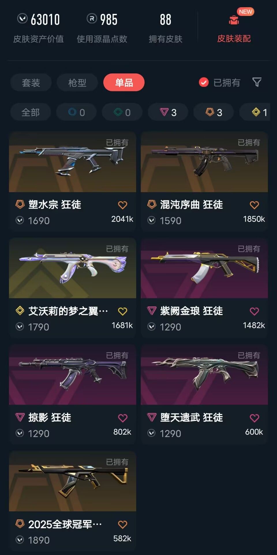 可排⚡6.3w库存⚡22 25冠军套⚡紫金混沌塑水艾沃莉狂徒⚡侦察千灵幻影⚡vct爪刀雷切⚡千灵冥狙