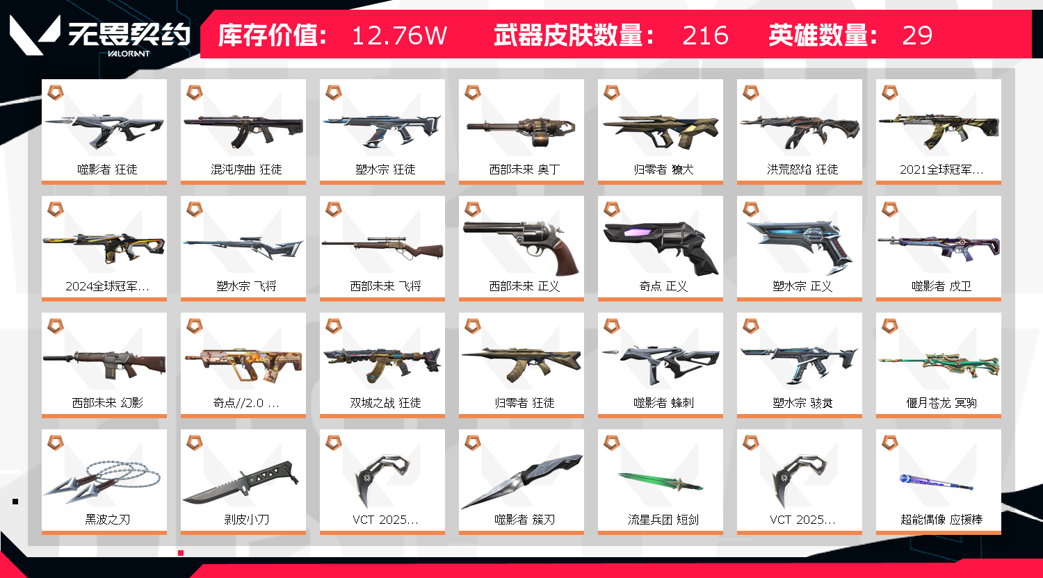 • 皮肤资产价值: 127625