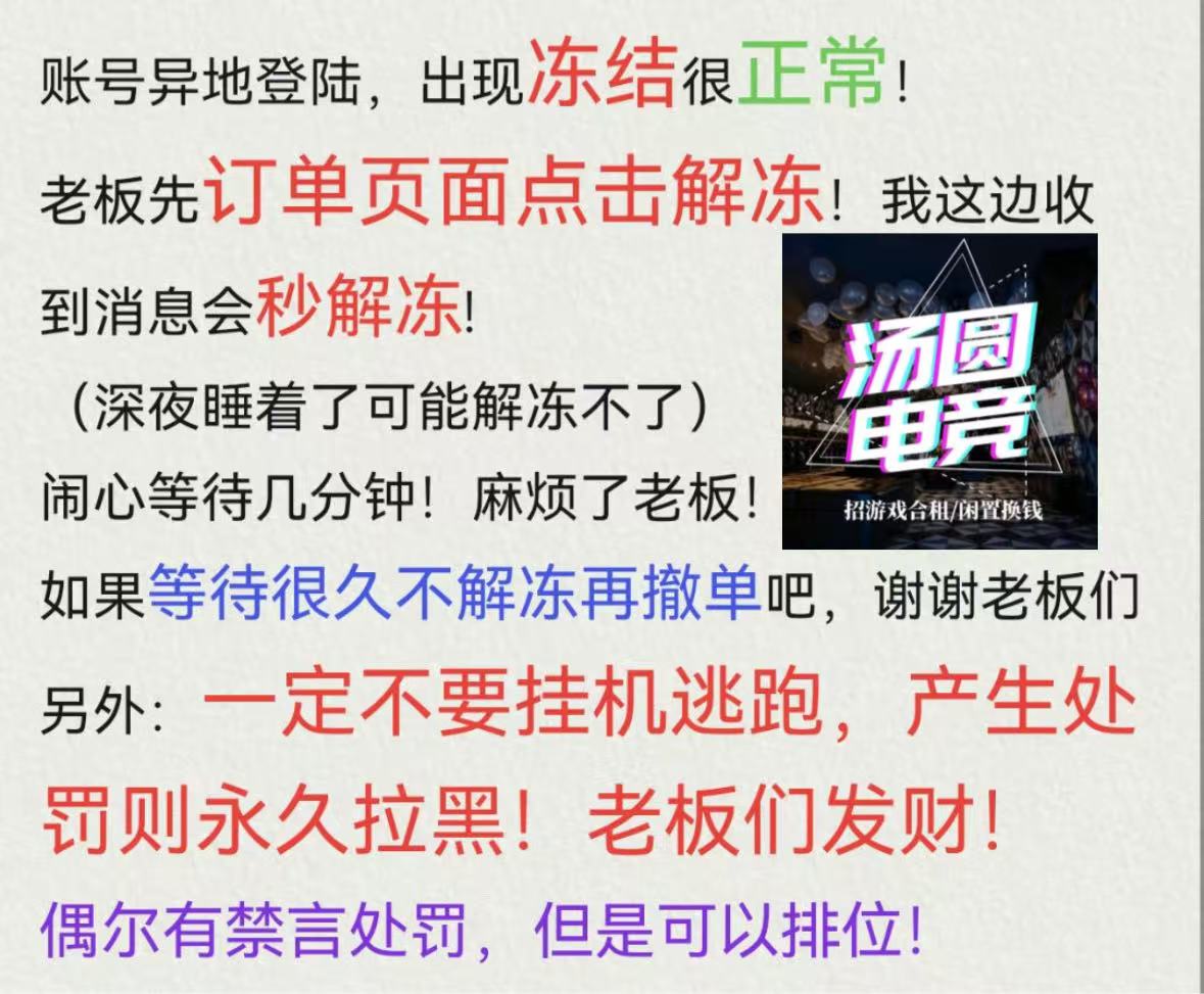 • 租号押金:0.0(订单结束后24小时退还)