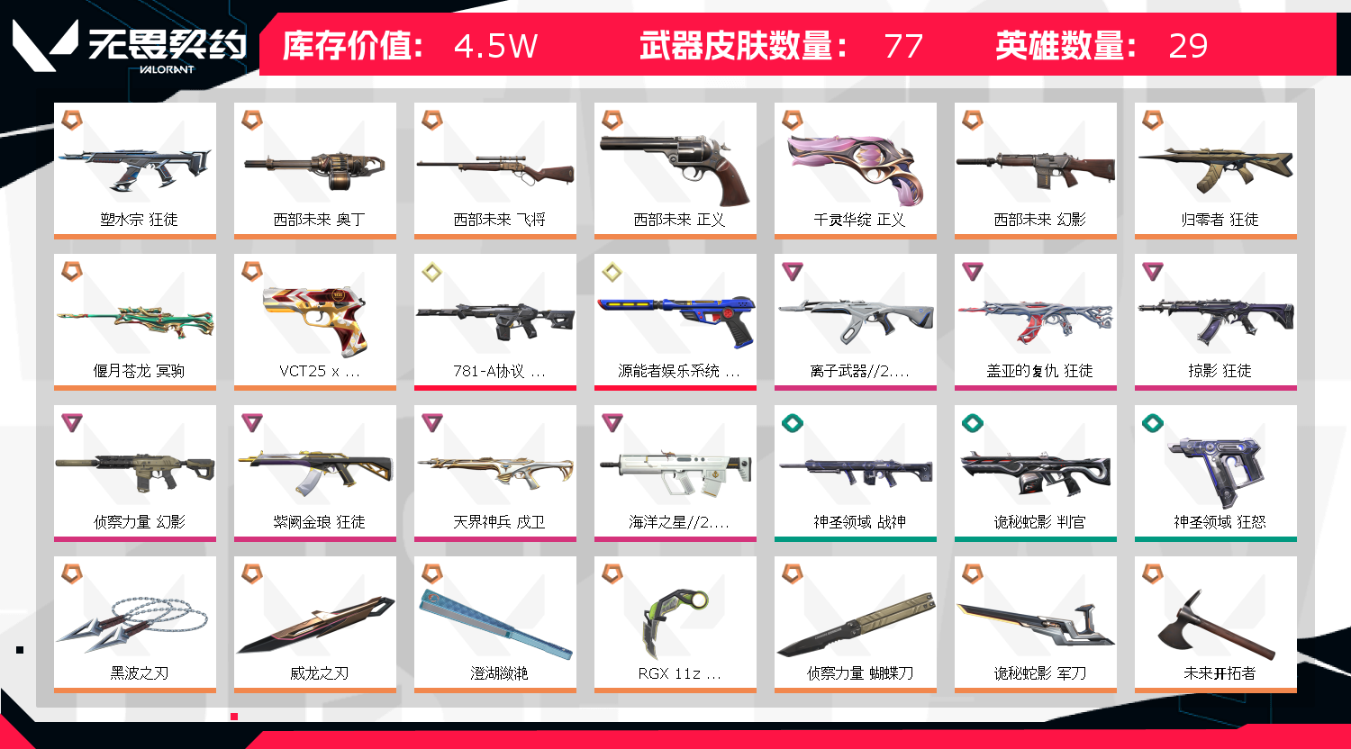 • 武器皮肤数量: 77
