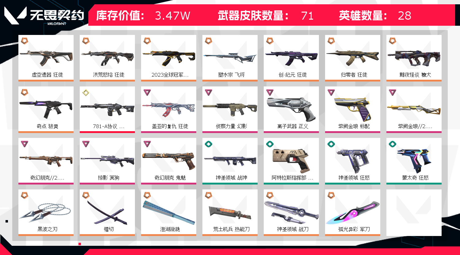 首页 > 租号大厅 > 无畏契约-wegame > wegame/wegame > 3.5w库存✨23冠军✨鱼扇✨镭切✨黑波✨虚空ak✨盖亚ak✨创纪元ak✨归零者ak✨781m4✨