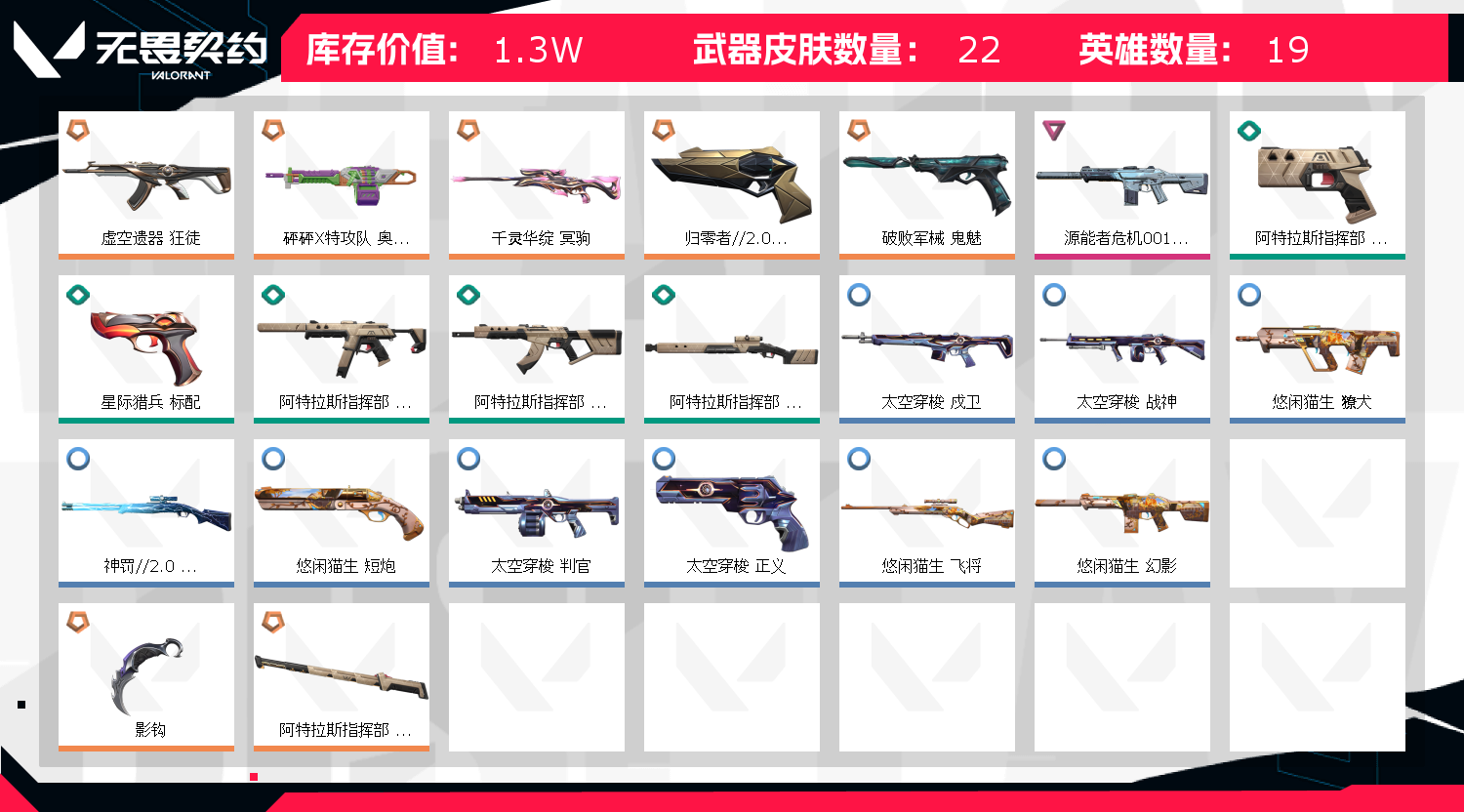 • 皮肤资产价值: 13010