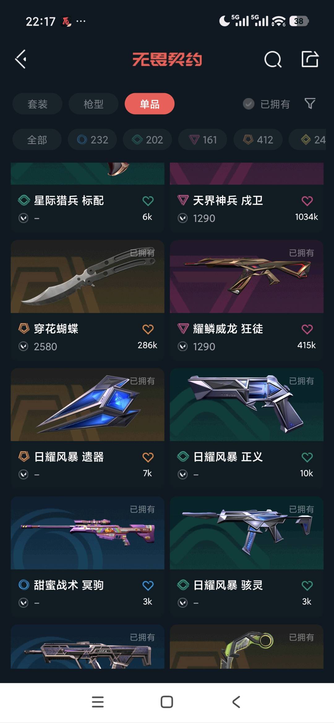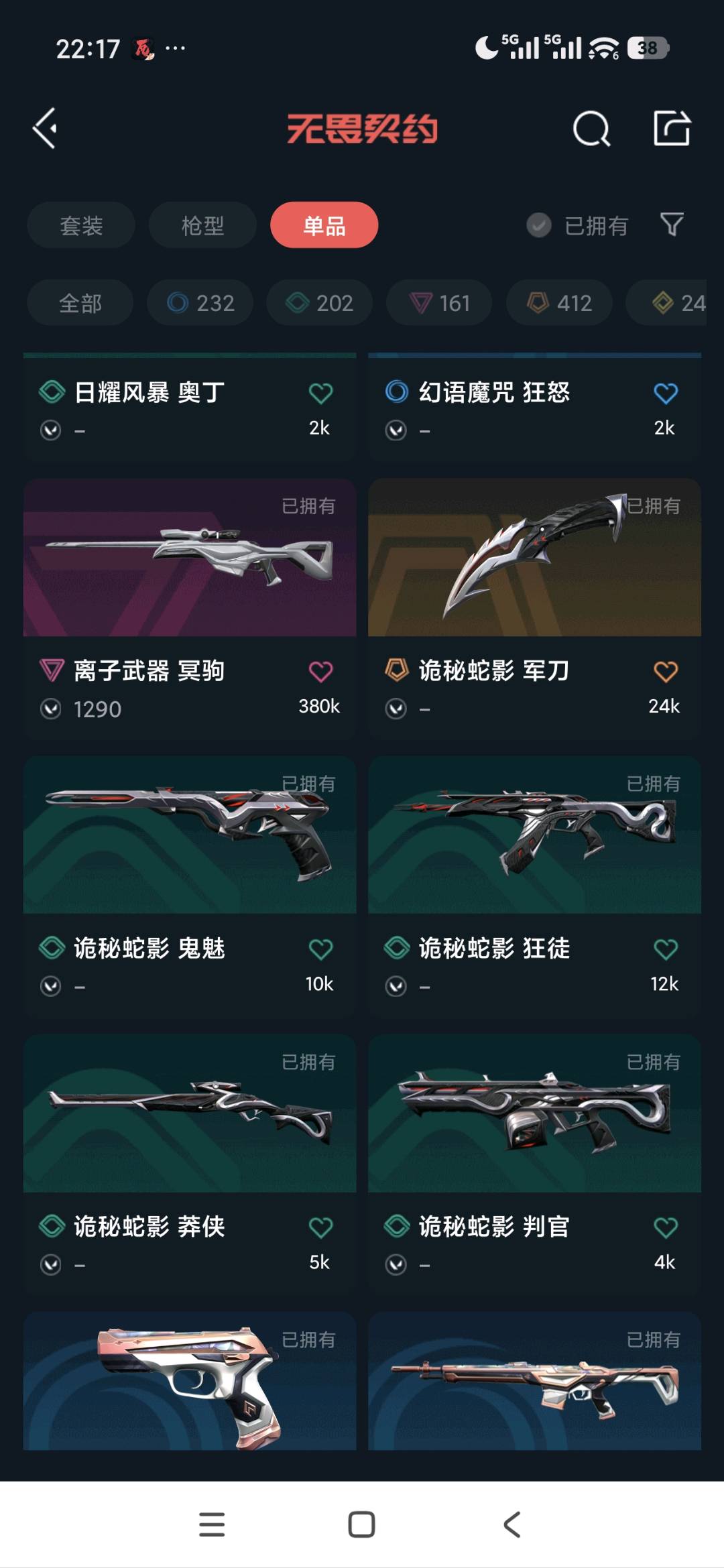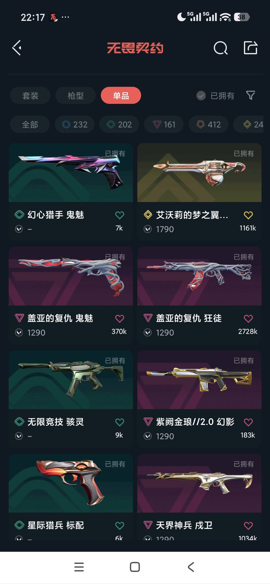 • 武器皮肤数量: 38