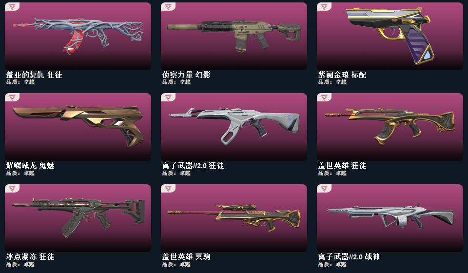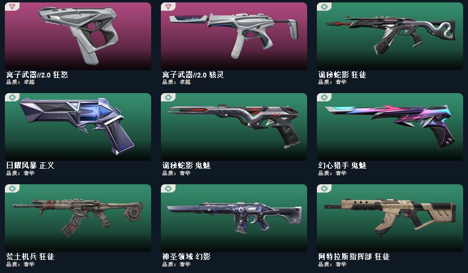 wegame无畏契约★神圣领域 战刀,镭切,荒土机兵 热能刀,侦察力量 蝴蝶刀末日之翼 短炮,折光棱晶 标配,星云暗涌 鬼魅,创·纪元 正义,VCT25 x 100T 标配,神圣领域 狂怒,月球哨兵 正义,掠影 正义,耀鳞威龙 鬼魅,奇点//2.0 鬼魅,纳米打击 正义,荒土机兵 标配,逆冲蛮牛 狂怒,般若假面//2.0 狂徒