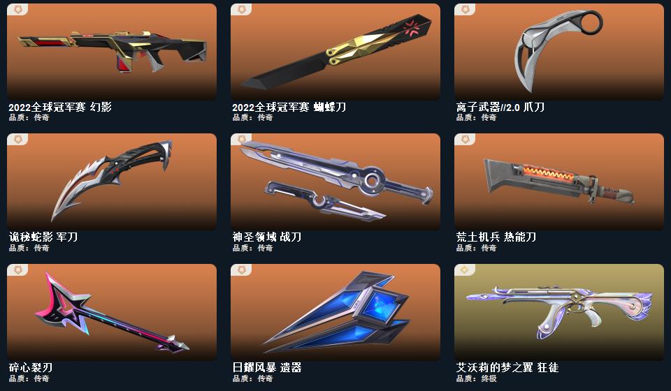wegame无畏契约★武器皮肤数量:50,神圣领域 战刀,镭切,荒土机兵 热能刀,侦察力量 蝴蝶刀末日之翼 短炮,折光棱晶 标配,星云暗涌 鬼魅,创·纪元 正义,VCT25 x 100T 标配,神圣领域 狂怒,月球哨兵 正义,掠影 正义,耀鳞威龙 鬼魅,奇点//2.0 鬼魅,纳米打击 正义,荒土机兵 标配,逆冲蛮牛 狂怒,般若假面//2.0 狂徒