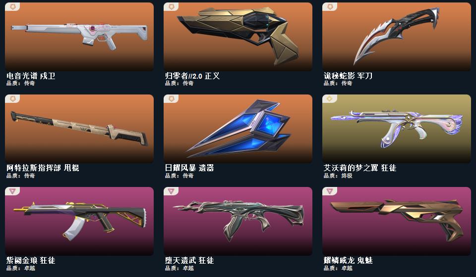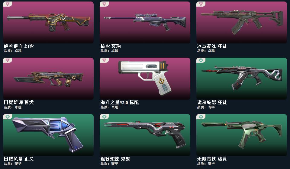 wegame无畏契约★武器皮肤数量:62,幻心猎手 鬼魅,星际猎兵 标配,归零者//2.0 正义,阿特拉斯指挥部 标配,太空穿梭 正义,悠闲猫生 短炮,海洋之星//2.0 标配,耀鳞威龙 鬼魅,日耀风暴 正义,幻语魔咒 狂怒,甜蜜战术 鬼魅,诡秘蛇影 鬼魅,末日之翼 短炮,折光棱晶 标配,星云暗涌 鬼魅,西部未来 正义 无限竞技 骇灵,阿特拉斯指挥部 骇灵,日耀风暴 骇灵,折光棱晶 蜂刺